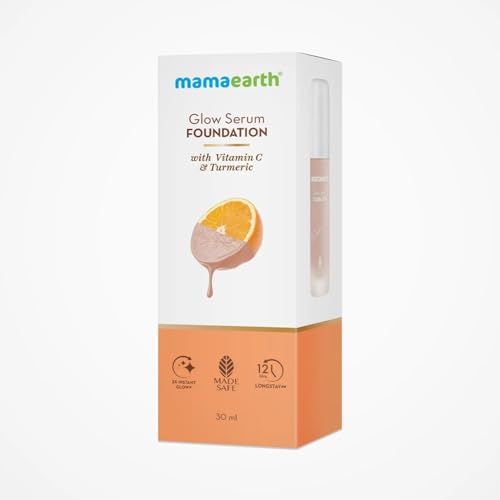 Mamaearth Glow Serum Medium Foundation Dewy With Vitamin C & Turmeric For 12-Hour Long Stay - 01 Ivory Glow - 30 Ml, Normal