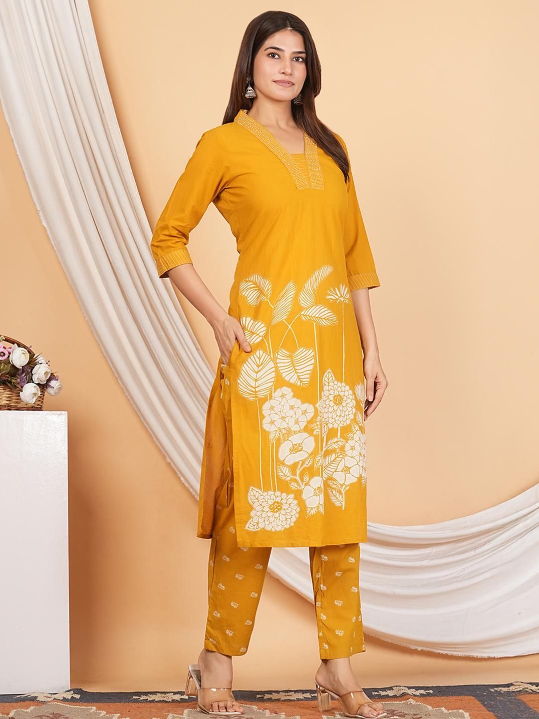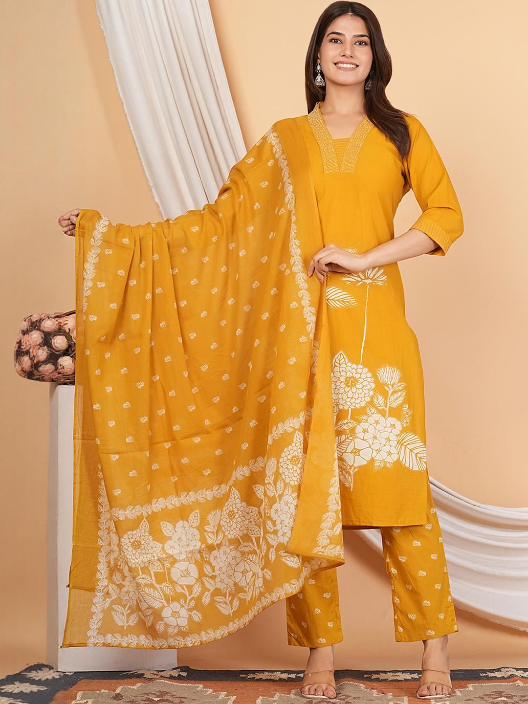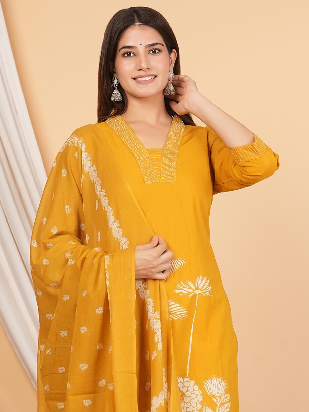 MANDAKINI Women Printed Pure Cotton Kurta with Palazzos & Dupatta