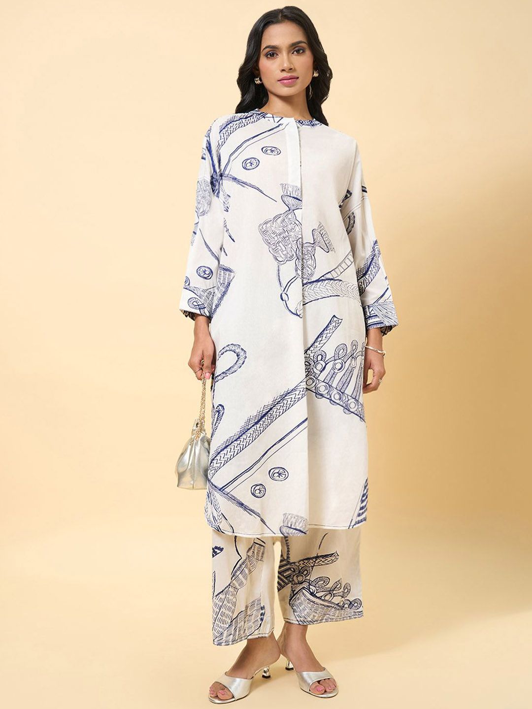 Marigold Lane Abstract Printed Regular Pure Cotton Kurta With Trousers