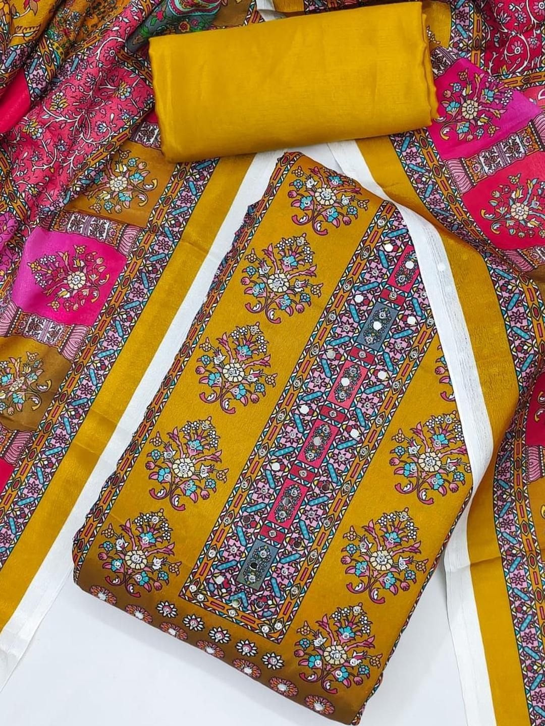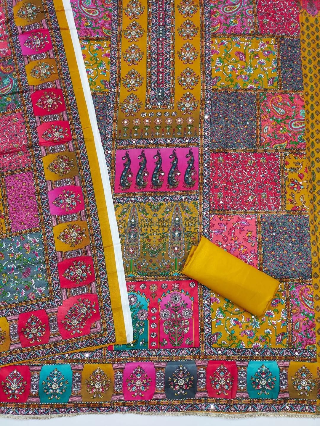 Maroosh Floral Printed Mirror Work Unstitched Dress Material