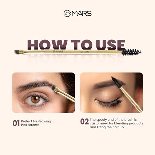 PERFECT USE: MARS Eyebrow Angled Brush with a Spoolie is a dynamic duo for your brows. Shape and groom with precision for eyebrows that frame your face beautifully. DUAL-PURPOSE: This brush features a spoolie on the opposite end, perfect for grooming and blending brows, ensuring a polished look. PRECISE APPLICATION: The angled brush allows for precise and controlled application of makeup, making it ideal for creating sharp lines and defining brows. EASY TO CLEAN: Simple to clean and maintain, ensuring the brush remains in excellent condition. TRAVEL-FRIENDLY: Compact and portable, making it an ideal tool for on-the-go touch-ups or travel