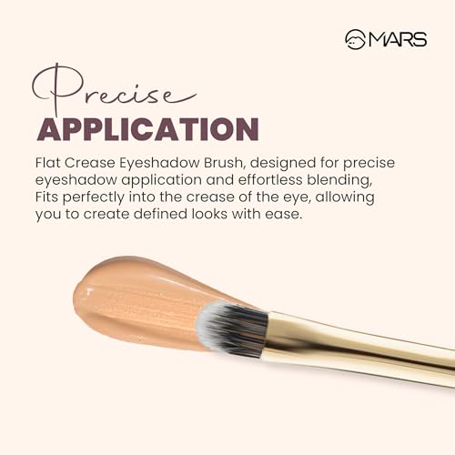 PRECISION IN EYE MAKEUP: MARS Artist's Arsenal Professional Flat Crease Brush is meticulously crafted for flawless eye makeup application. Its precise design allows for detailed work, ensuring your eye makeup looks perfectly defined. VERSATILE FUNCTIONALITY: This brush isn't limited to one task. Its multi-purpose design makes it ideal for various eye makeup techniques, from blending to creating sharp creases PROFESSIONAL-GRADE QUALITY: Backed by professional standards, this brush meets the demands of makeup artists and enthusiasts alike. Experience the difference in quality and performance with every stroke, achieving professional-level results effortlessly. SYNTHETIC BRISTLES: Crafted with high-quality synthetic bristles, this brush is cruelty-free and vegan-friendly. The synthetic fibers mimic the texture of natural hair, providing optimal performance without compromising on ethics. LUXE PRODUCT DESIGN: Elevate your beauty collection with this luxurious brush, encased in golden packaging, adding sophistication and glamour to your makeup routine.