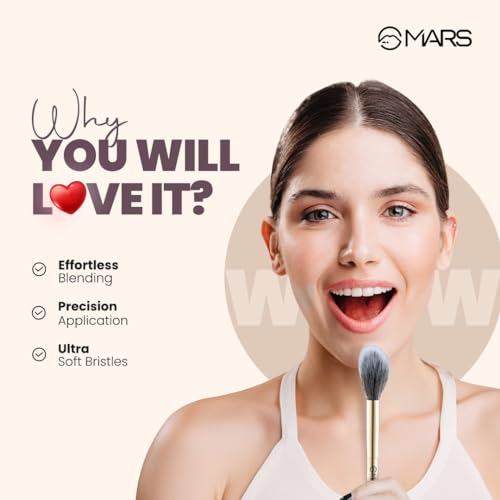 MARS Artist's Arsenal Professional Small Powder Brush | Feather Soft Bristle | Best for Hard to Reach Area | Precise Synthetic Bristles | Luxe Design Makeup Brush (Golden)