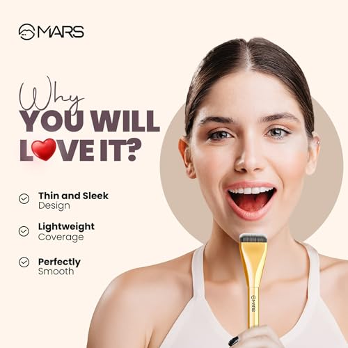 MARS Artist's Arsenal Ultra Thin Foundation Makeup Brush For Blending Liquid Foundation & Cream | Ultra Thin Bristles | Flawless Application | Sleek Design for Minimal Effort (Golden)