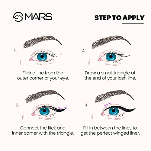 EASY GLIDE- MARS free flow liquid eyeliner offers easy and smooth glide, giving you complete control over your eyeliner look. Whether you prefer thin or bold lines, this free flow liquid eyeliner can be customized to match your style with ease. DEMI MATTE FINISH- The jet-black color is bold and eye-catching, while the demi-matte finish adds a touch of subtlety and elegance that's perfect for any occasion. Whether you're going for a classic winged liner or a more dramatic cat-eye, the demi-matte finish of MARS liquid eyeliner will help you achieve a flawless and polished look that's sure to turn heads. HIGH PRECISION APPLICATOR- The high-precision applicator is specially designed to provide maximum control and accuracy, allowing you to draw sharp and precise lines that bring out the beauty of your eyes. Whether you're looking for a classic doe-eyed look or a more dramatic cat-eye, the precision applicator of MARS free flow eyeliner is sure to help you achieve your desired look with ease. SMUDGE PROOF & WATER PROOF- Say goodbye to smudging and raccoon eyes! This eyeliner is smudge and water proof ensuring your eyes stay bold and beautiful all day long, no matter what your day brings. QUICK DRY- Whether you're running late for work or have a busy schedule, MARS liquid eyeliner has got your back with its specially designed quick drying formula. So, say goodbye to smudged and messy eyeliner and hello to a perfect, quick-drying finish that lasts all day.