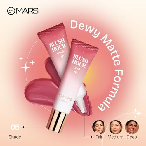 MARS Liquid Blush Hour | Dewy-Matte Finish | Highly Pigmented | Lightweight & Long-Lasting Formula | Effortless Application (12 ml) (05-DUSK)