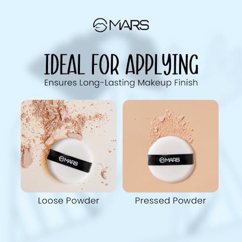 MARS Puffect Powder Puff with Strap | For Loose & Pressed Powder Application | Flawless Makeup Blend | Easy to Clean and Handle | Gentle on Skin | Pack of 2