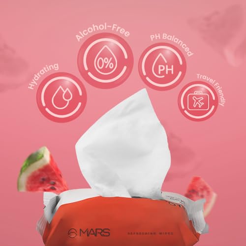 GENTLE FACIAL CLEANSING: MARS Refreshing Wet Wipes are designed for gentle facial cleansing, effectively removing dirt, oil, and makeup residue from the skin HYDRATES & MOISTURIZES: Infused with hydrating ingredients, these wet wipes provide essential moisture to the skin. They help replenish the skin's natural hydration levels, leaving it feeling revitalized, soft, and supple pH BALANCED & ALCOHOL-FREE: Maintain the skin's natural balance, preventing dryness or irritation. Being alcohol-free, they offer gentle care without stripping the skin of its natural oils, making them suitable for all skin types, including sensitive skin. FRUIT-INFUSED NOURISHMENT: Enriched with vitamins and antioxidants from fruit extracts, providing extra skincare benefits. They help nourish and shield the skin, enhancing its health and radiance. SOOTHINGthing Calming Effect: Formulated to soothe the skin, making them ideal for sensitive skin types or for use after sun exposure, providing gentle care that helps restore skin comfort and balance.