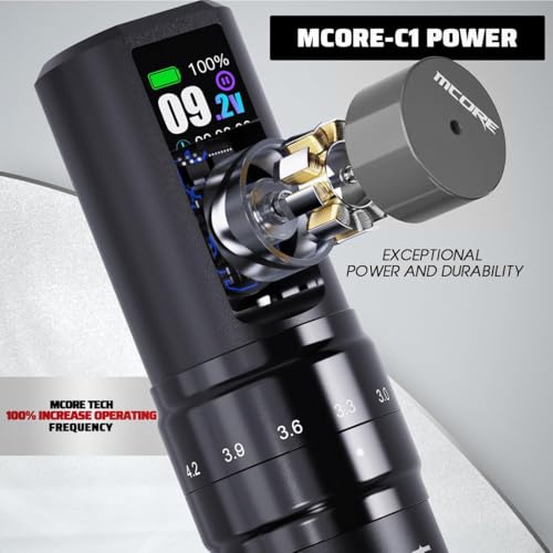 Wireless Tattoo Gun Pen: Mast Fold2 pro length 140mm/5.5in, weight 233g, standard 32mm grip for great comfortable control, battery work up to 7 hours. For Tattoo Creative Studio: The fold2 pro cordless tattoo machine was designed to deliver the tattooing performance that experts demand, specifically designed for creating pro creative lining & shading, all with the freedom of a wireless tattoo pen; intended for professional use only. Adjustable Real 7 Strokes Length: This wireless tattoo pen offering 7 strokes 2.4mm, 2.7mm, 3.0mm, 3.3mm, 3.6mm, 3.9mm, 4.2mm options, change your stroke on the fly just by turning the adjustment knob, lets you tattoo in any style with ease, great for applying soft black and grey, packing color and blending and lining. Mast tattoo tech give you more choice Powered by Mcore-C1 Motor Technology: Fold2 pro tattoo gun bagged with Mcore-C1 motor, Ultra Power No-Snag Motor allows for exceptional power and durability and glides through the thickest skin without snagging or pulling, it makes the machine have good balance between lines and shading, and perfect for demanding lining and color packing. Mastlabs Tattoo Battery Power: Easy replaceble battery, upport long-term tattoo work, output stable. 8V output voltage can work for 7 hours, only need 1.5-2 hours to fully charge. The side of the battery has a visible Oled display, ±0.1V voltage adjust, 4-12V working voltage. Versatile Use: Wireless for convenient use and different strokes work for any art&beauty styles.