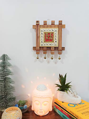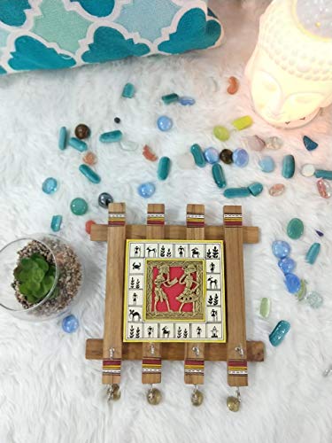 Mati Ke Laal Handpainted Square Dhokra Art Wooden Home Decorative Key Hanger (4 Hooks) Wall décor for Living Room.