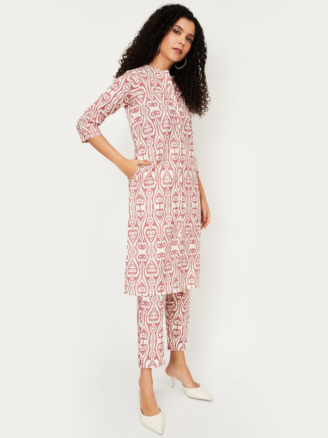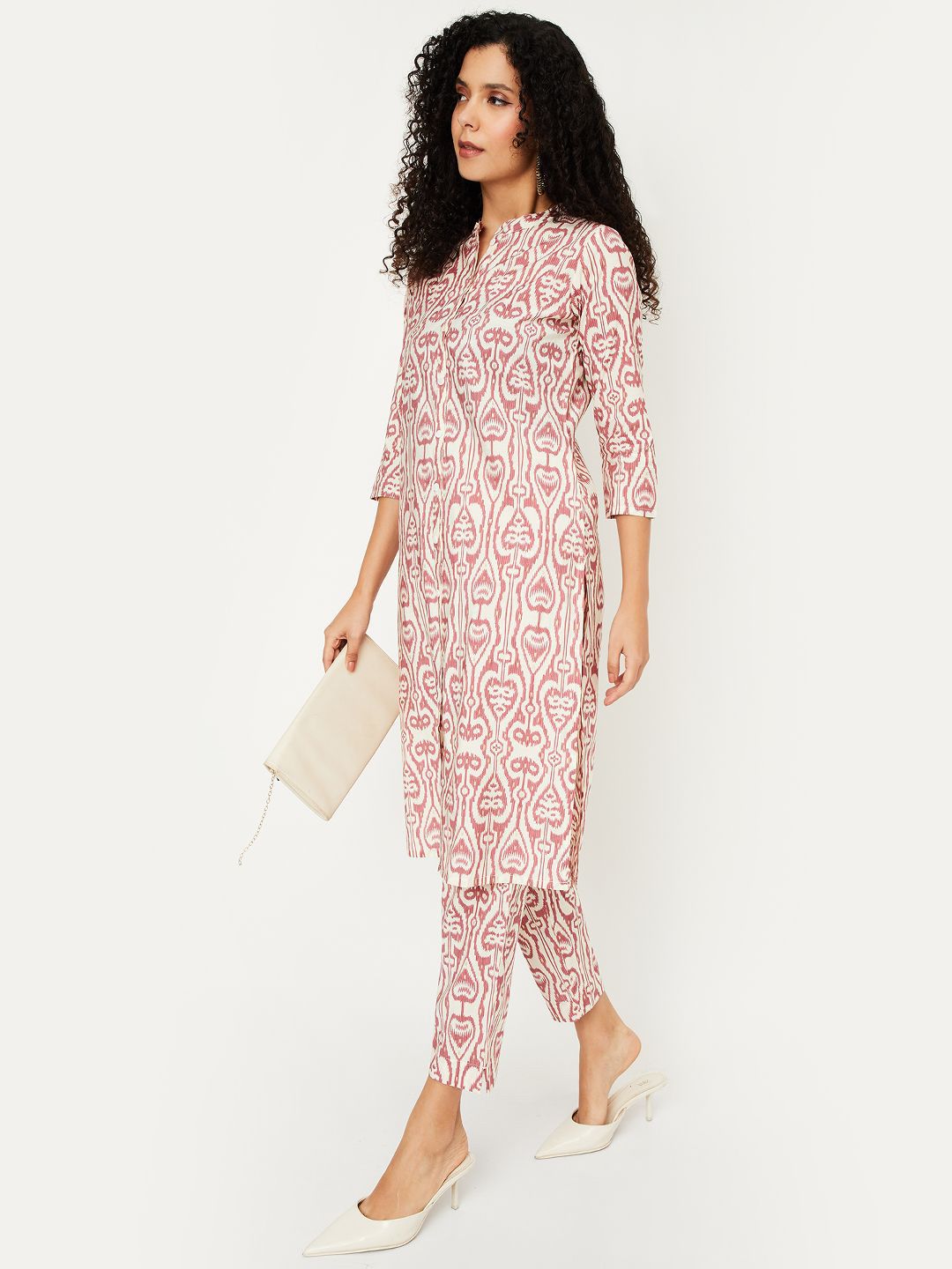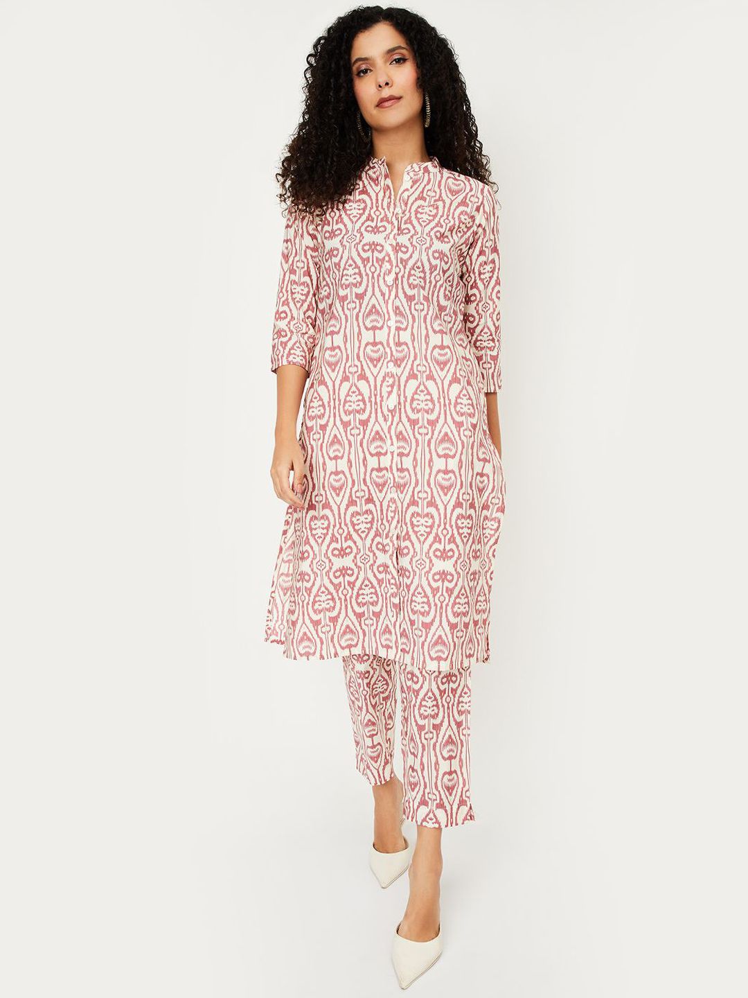 max Abstract Printed Mandarin Collar Straight Kurta With Trousers