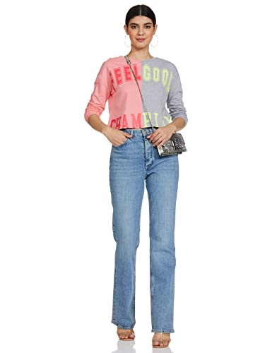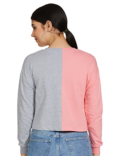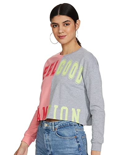 Max Cotton Women Colourblocked Cropped Round Neck Sweatshirt