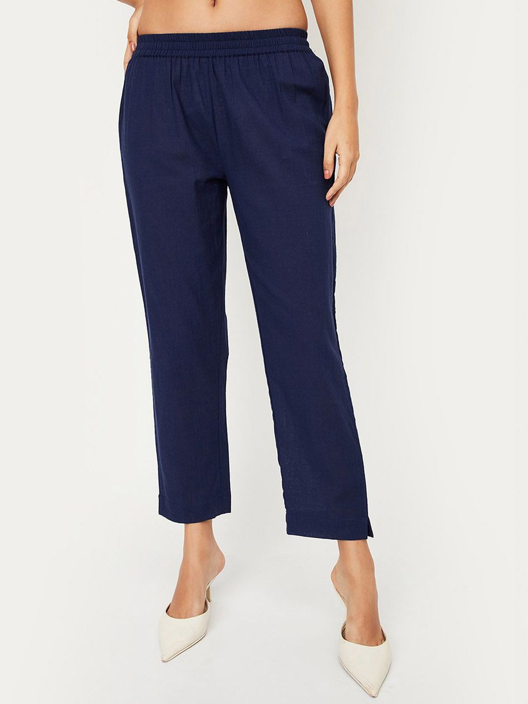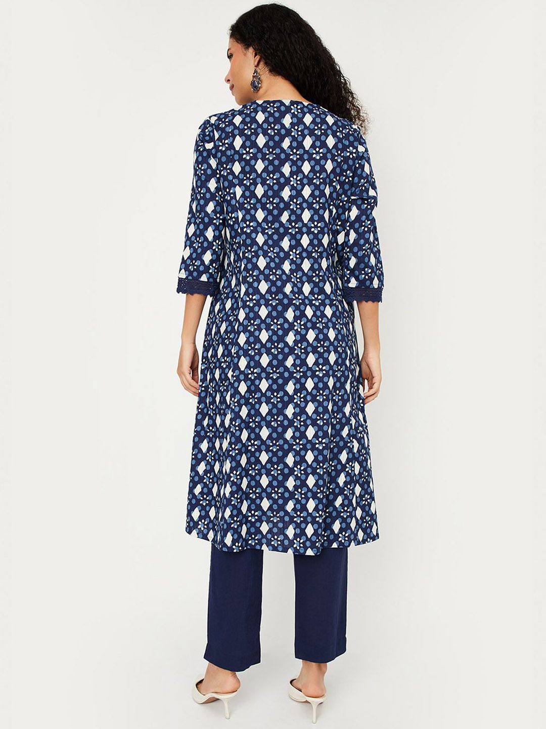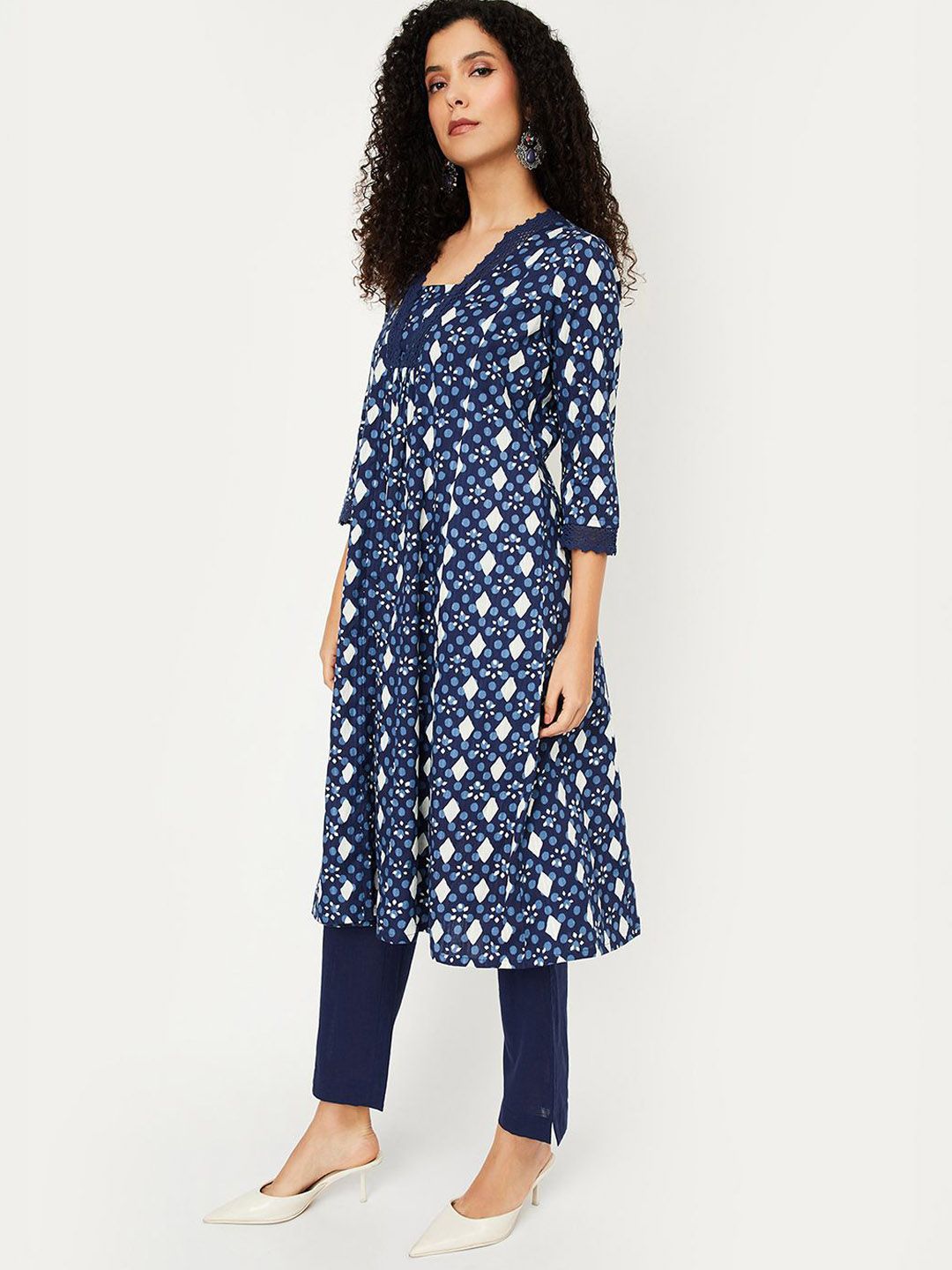 max Ethnic Motifs Printed Square Neck Pure Cotton A-line Kurta With Trousers