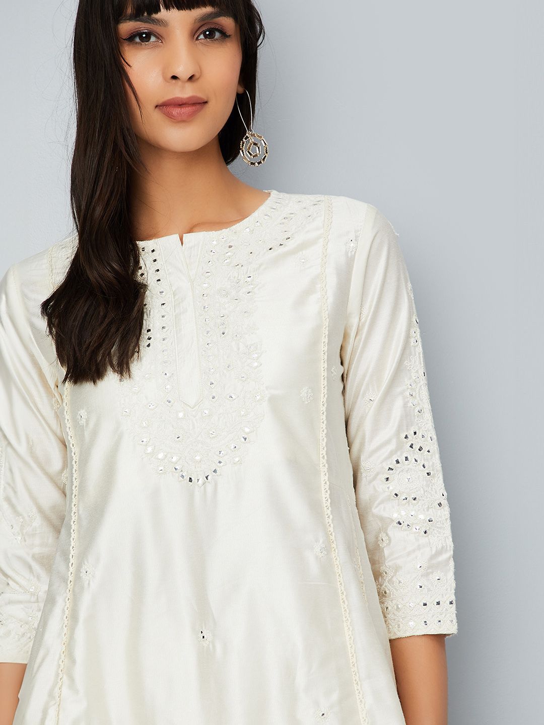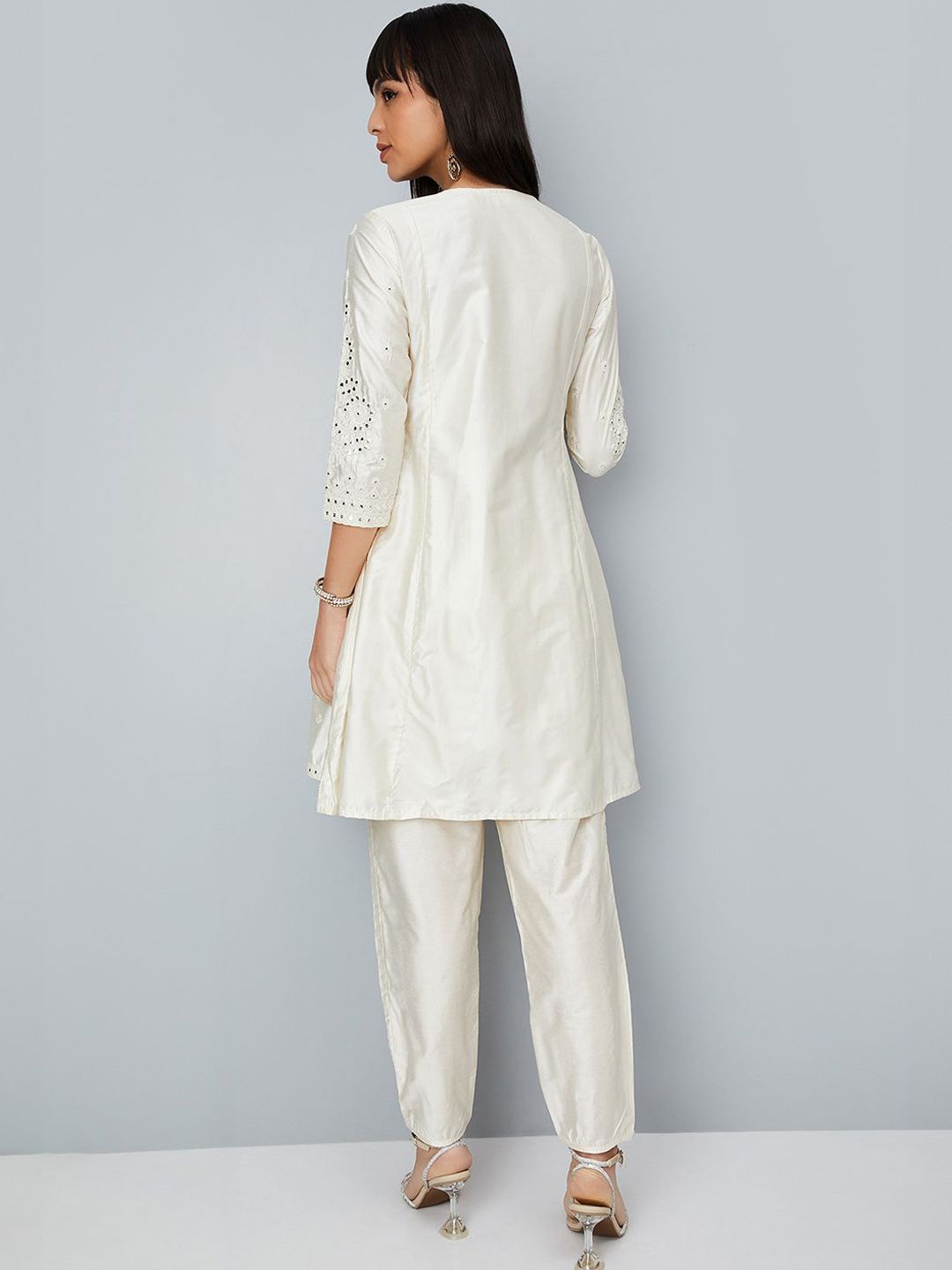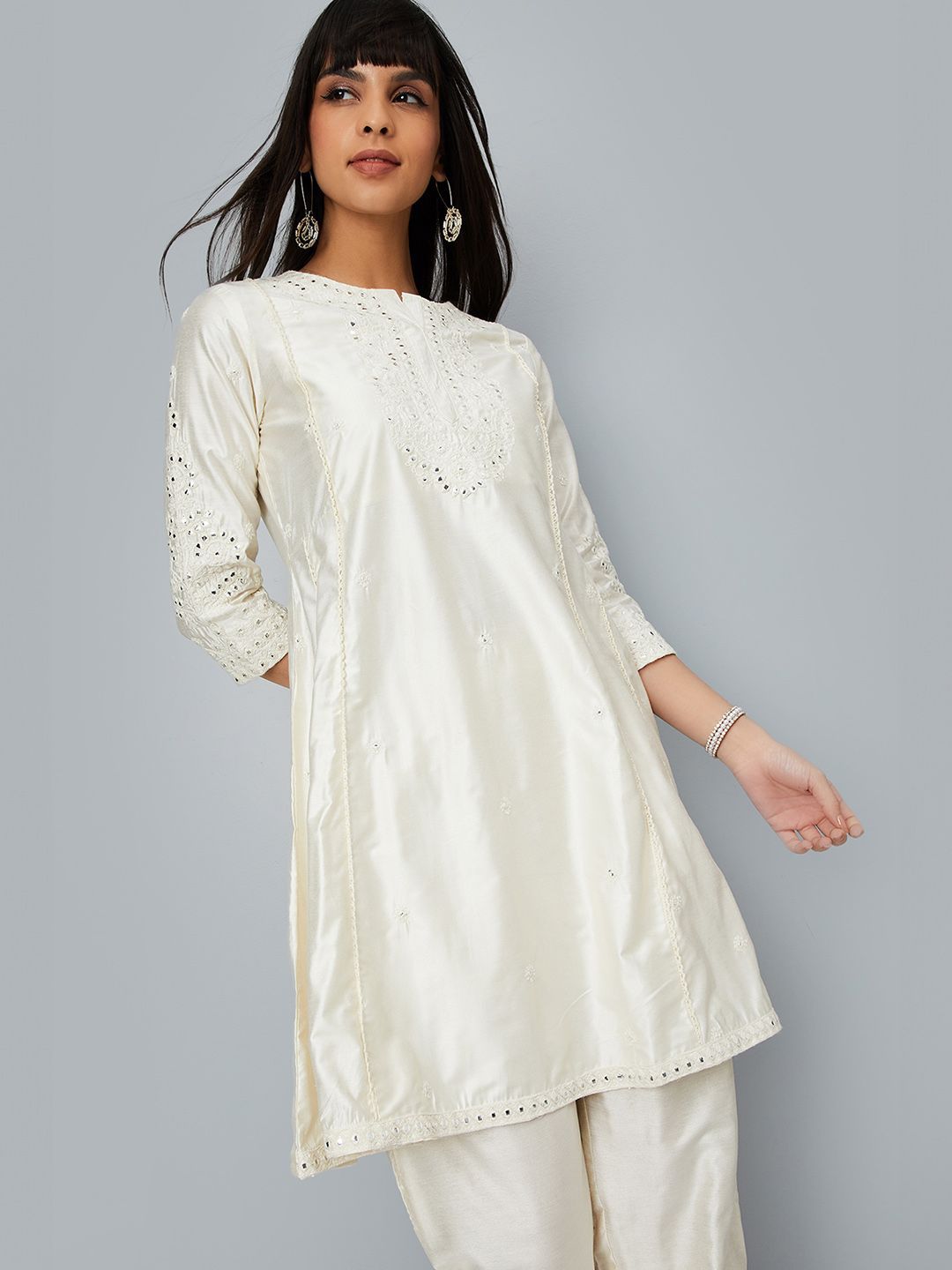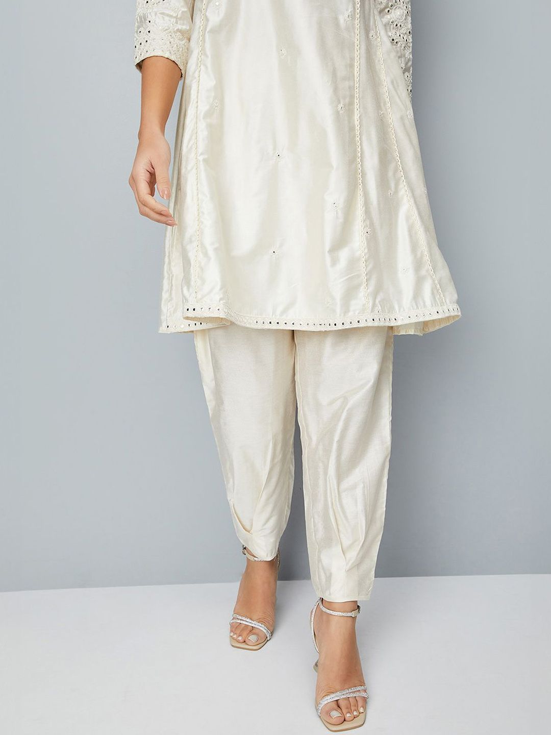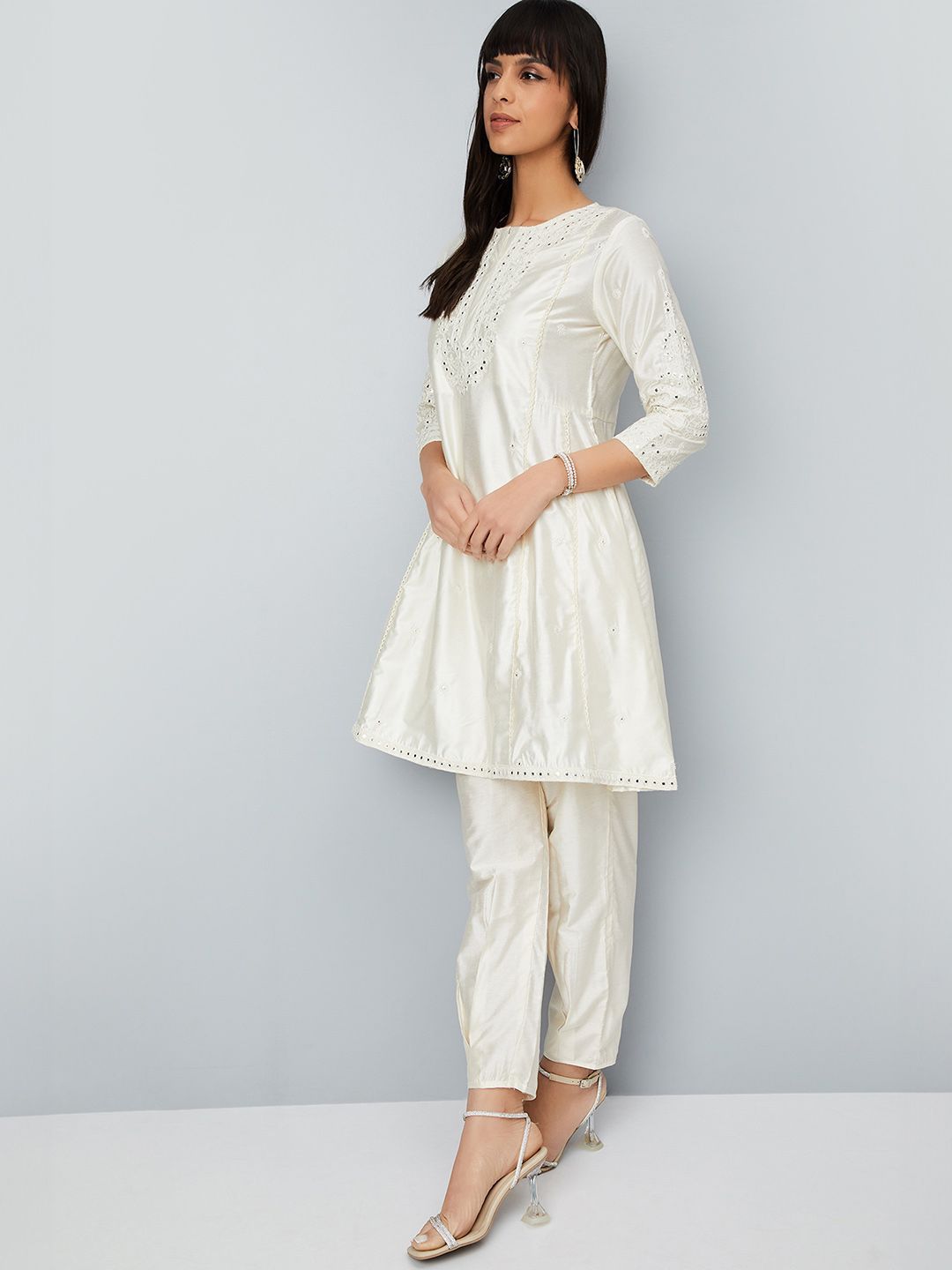 max Floral Embroidered Mirror Work Straight Kurta With Trousers