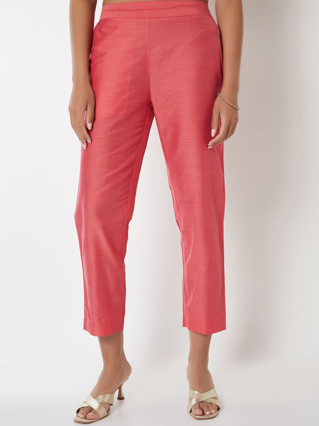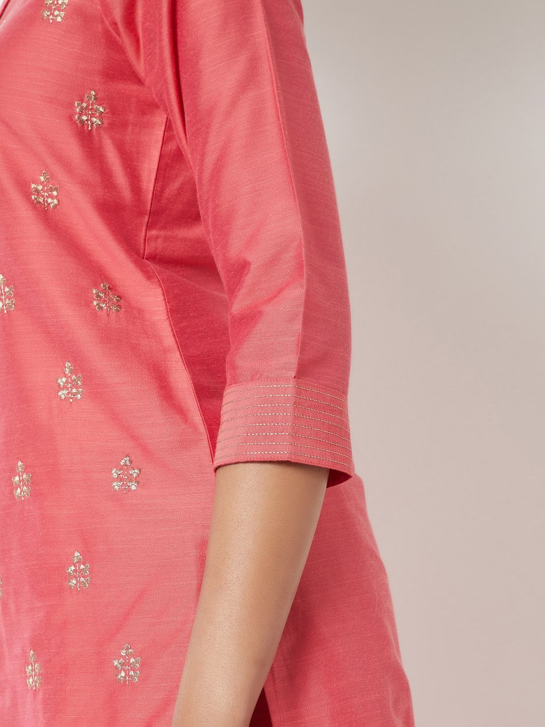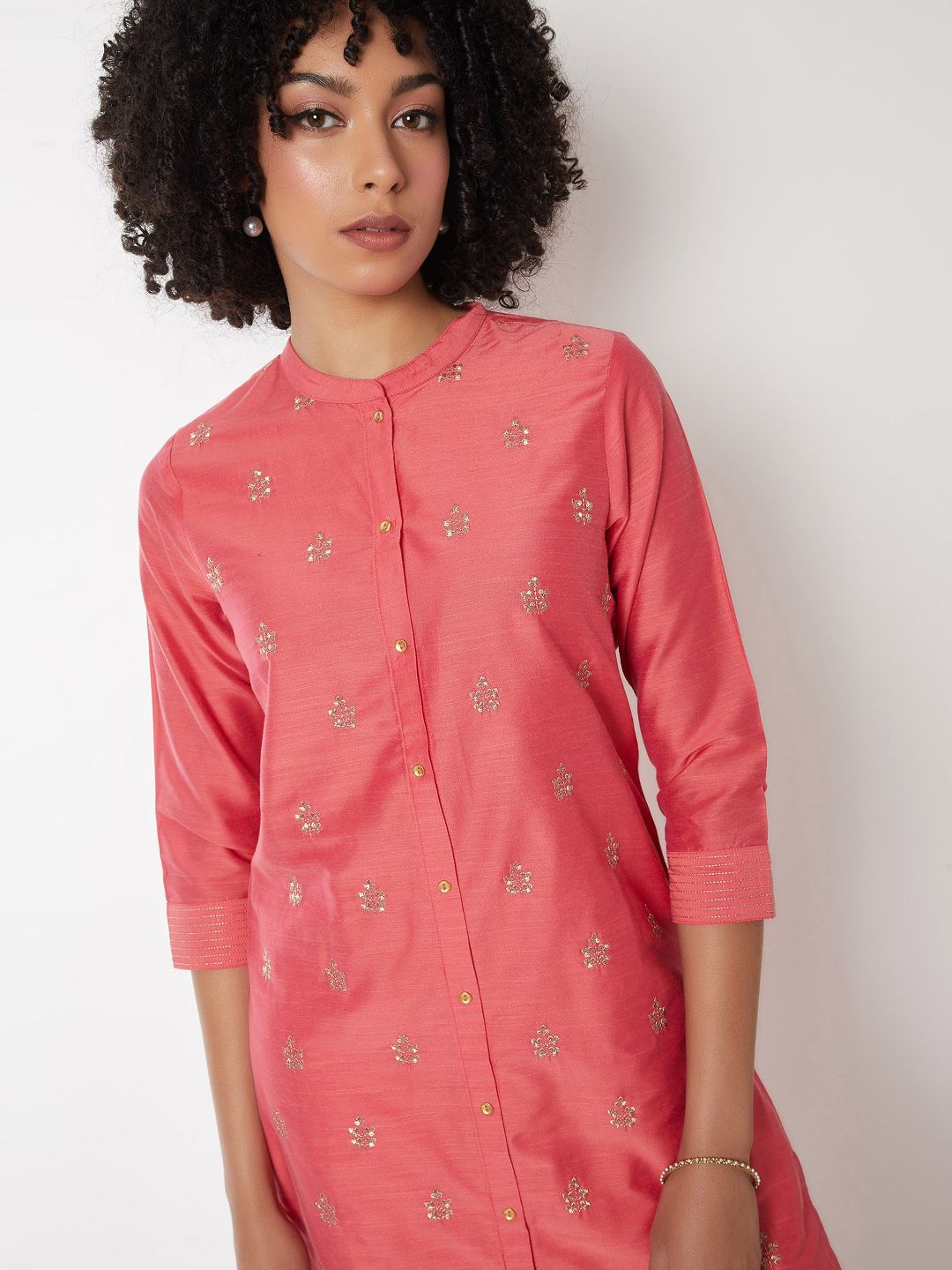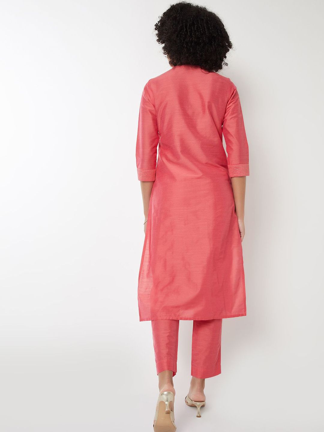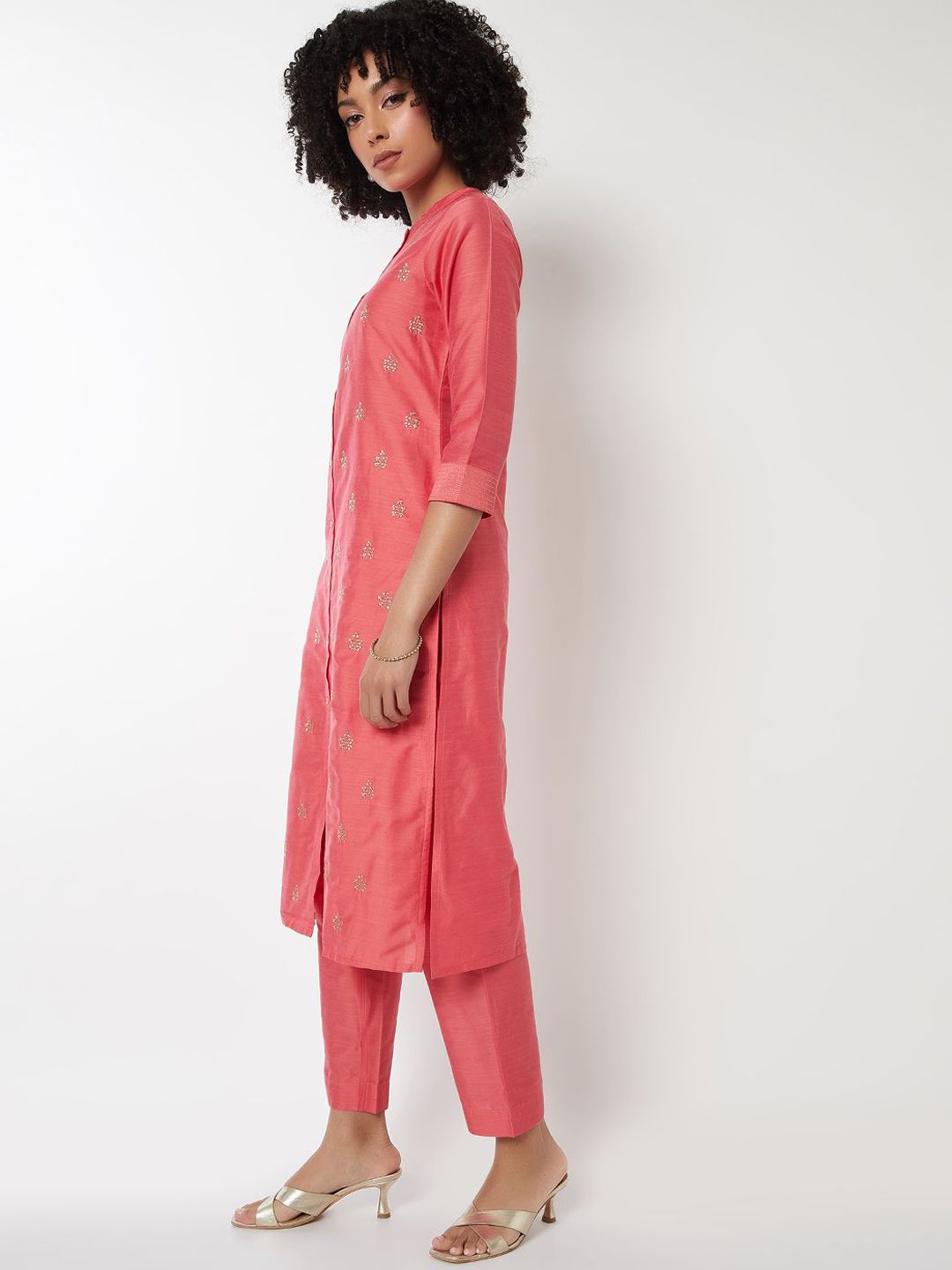 max Floral Embroidered Thread Work Mandarin Collar Straight Kurta With Trousers
