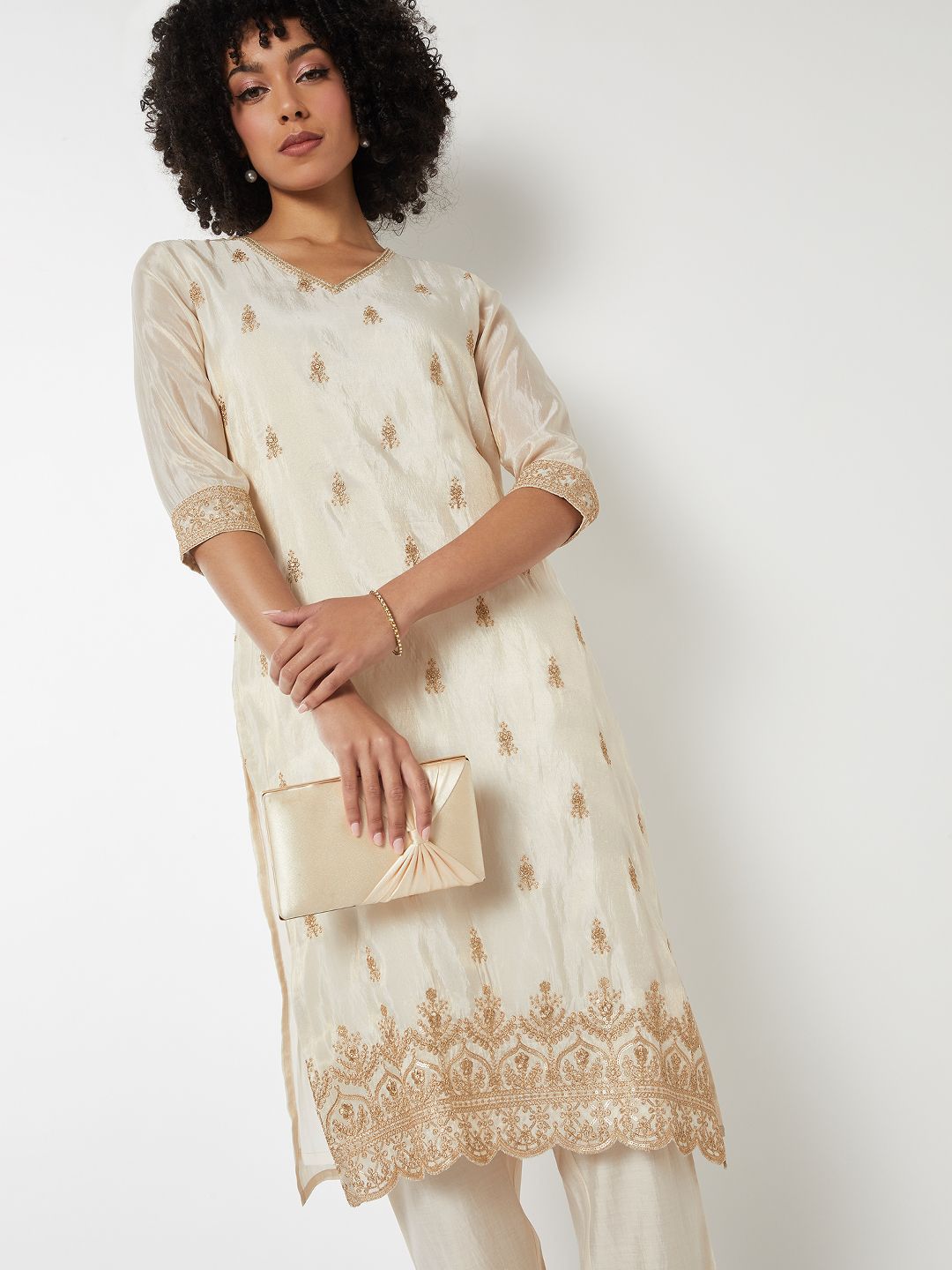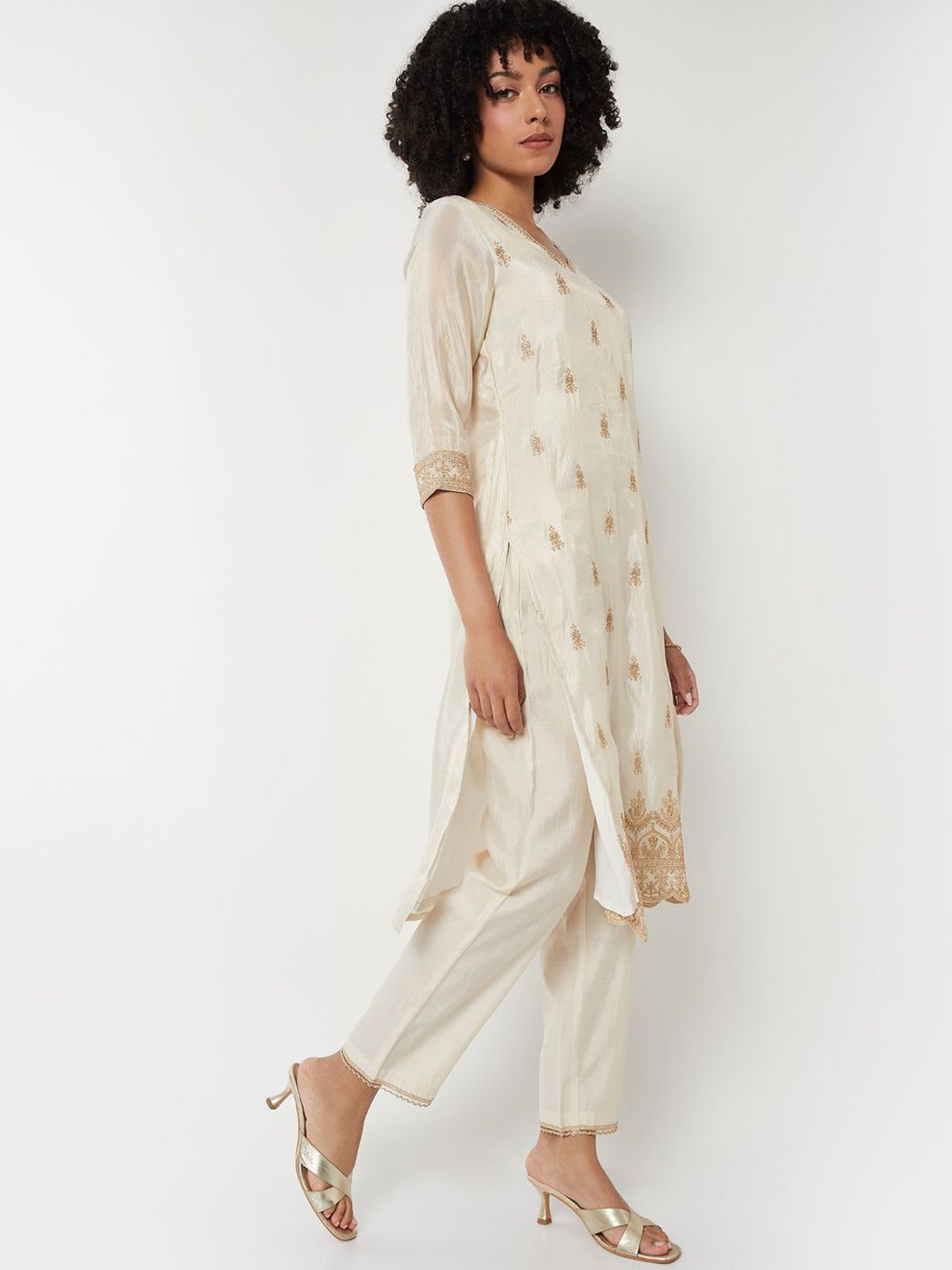 max Floral Embroidered V-Neck Sequinned Straight Kurta With Trousers