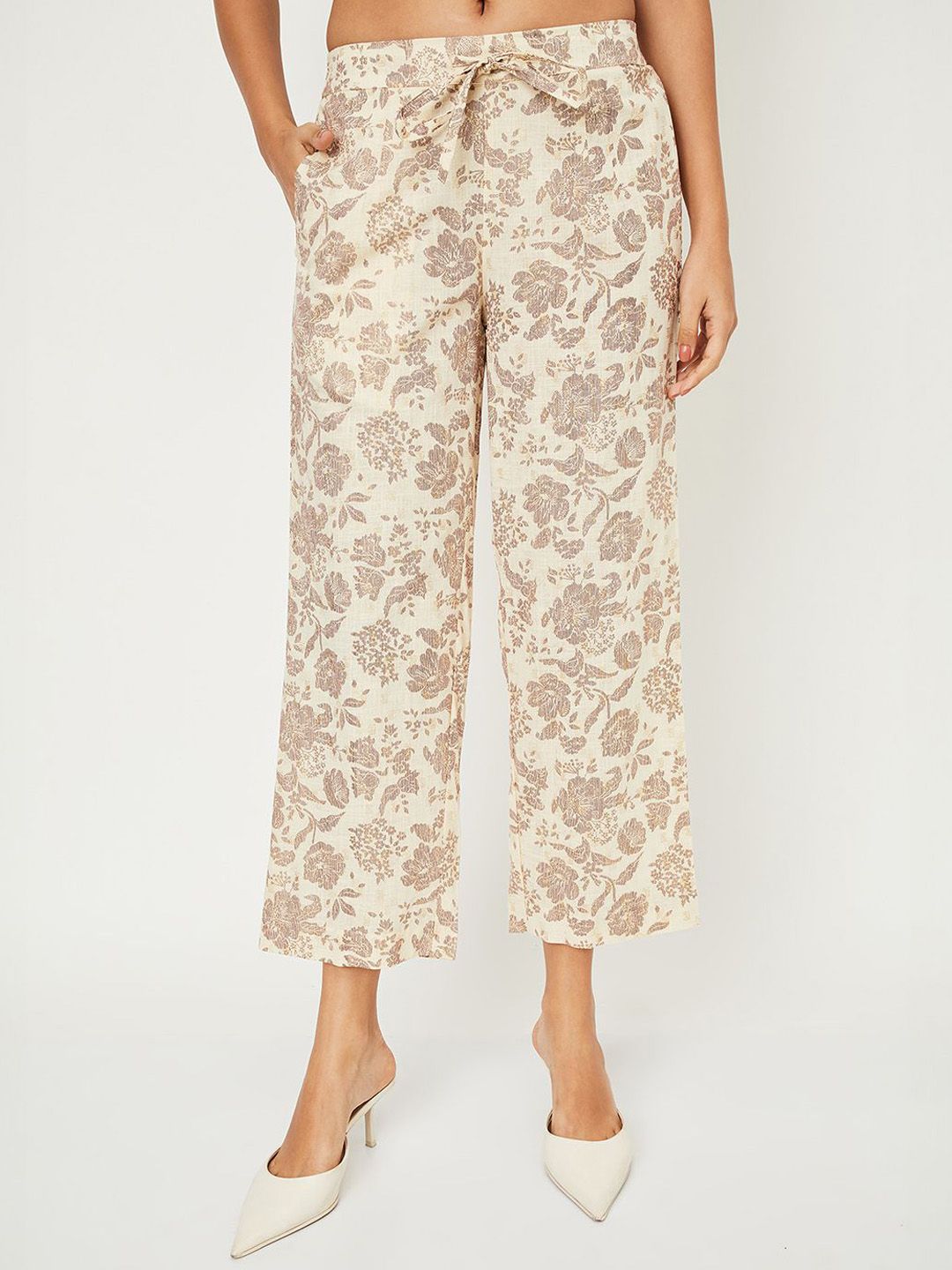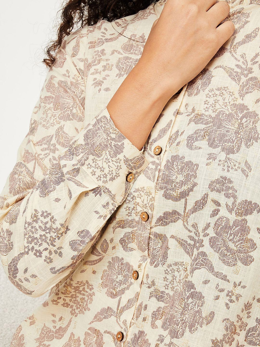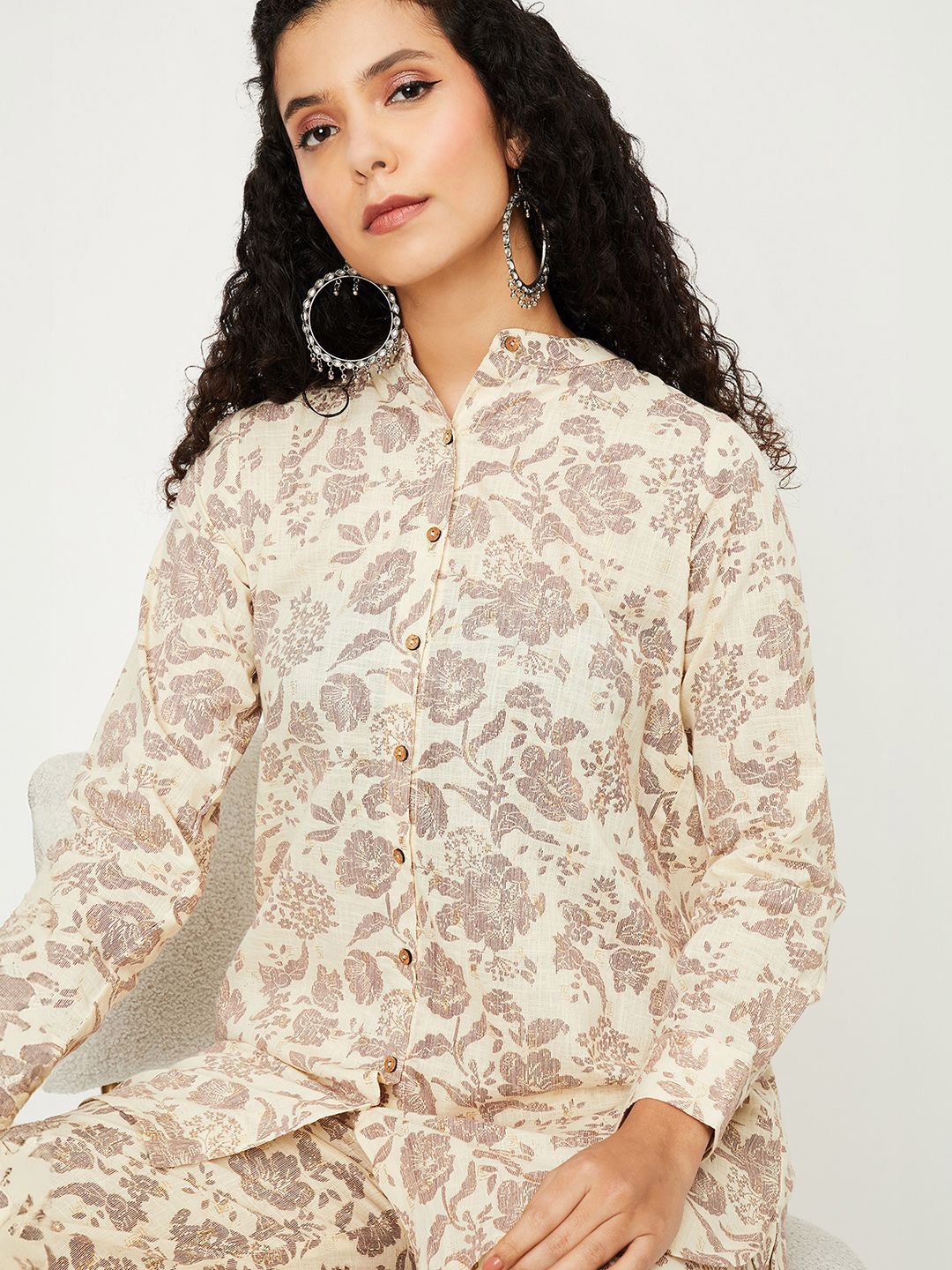 max Floral Printed Mandarin Collar Pure Cotton Straight Kurti With Trousers