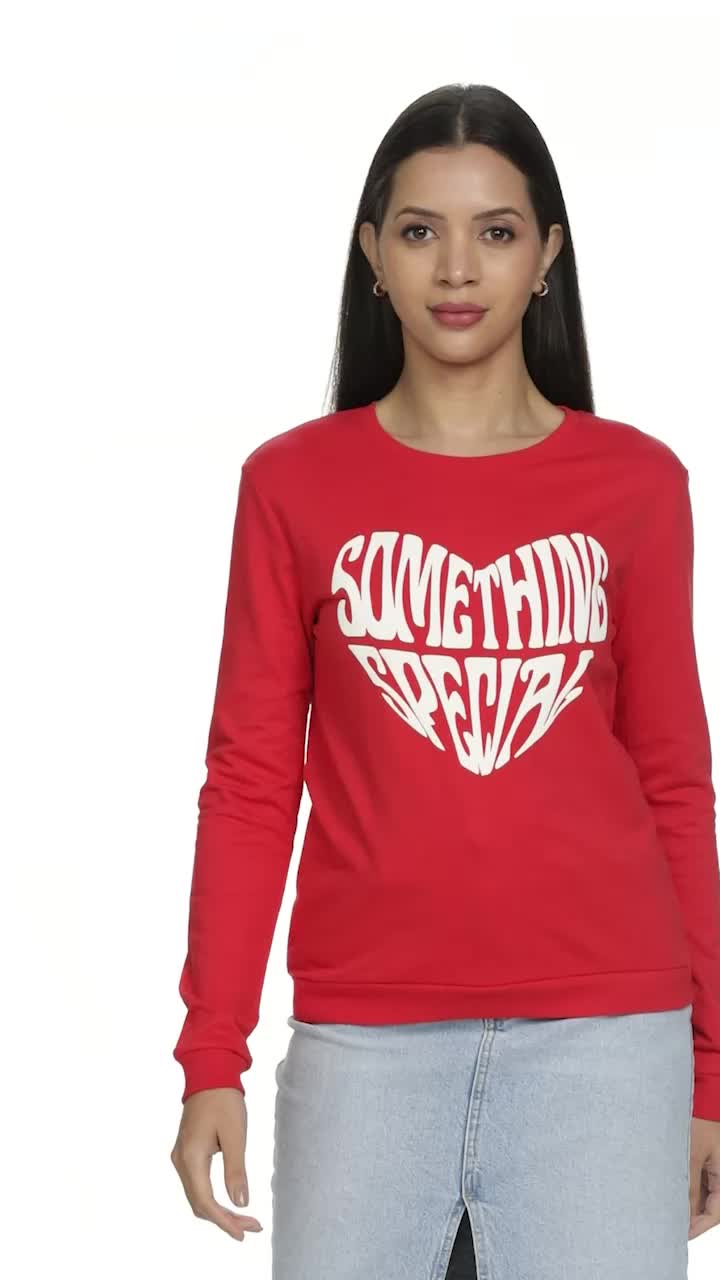 Max Women Cotton Graphic Printed Crew Neck Sweatshirt