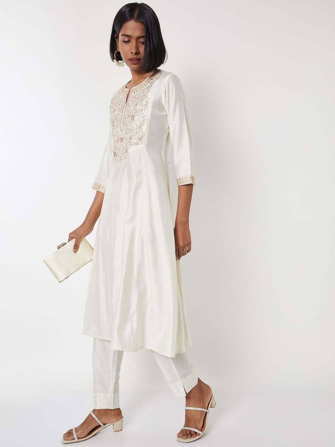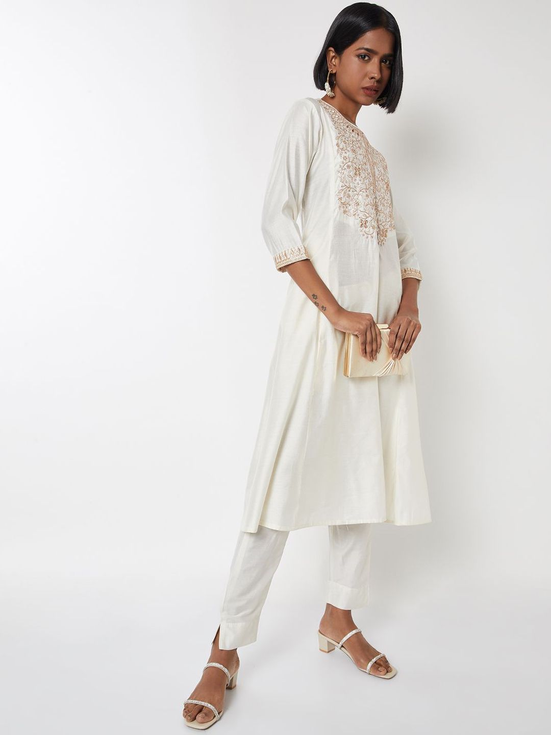 max Women Ethnic Motifs Embroidered Regular Zardozi Kurta with Trousers