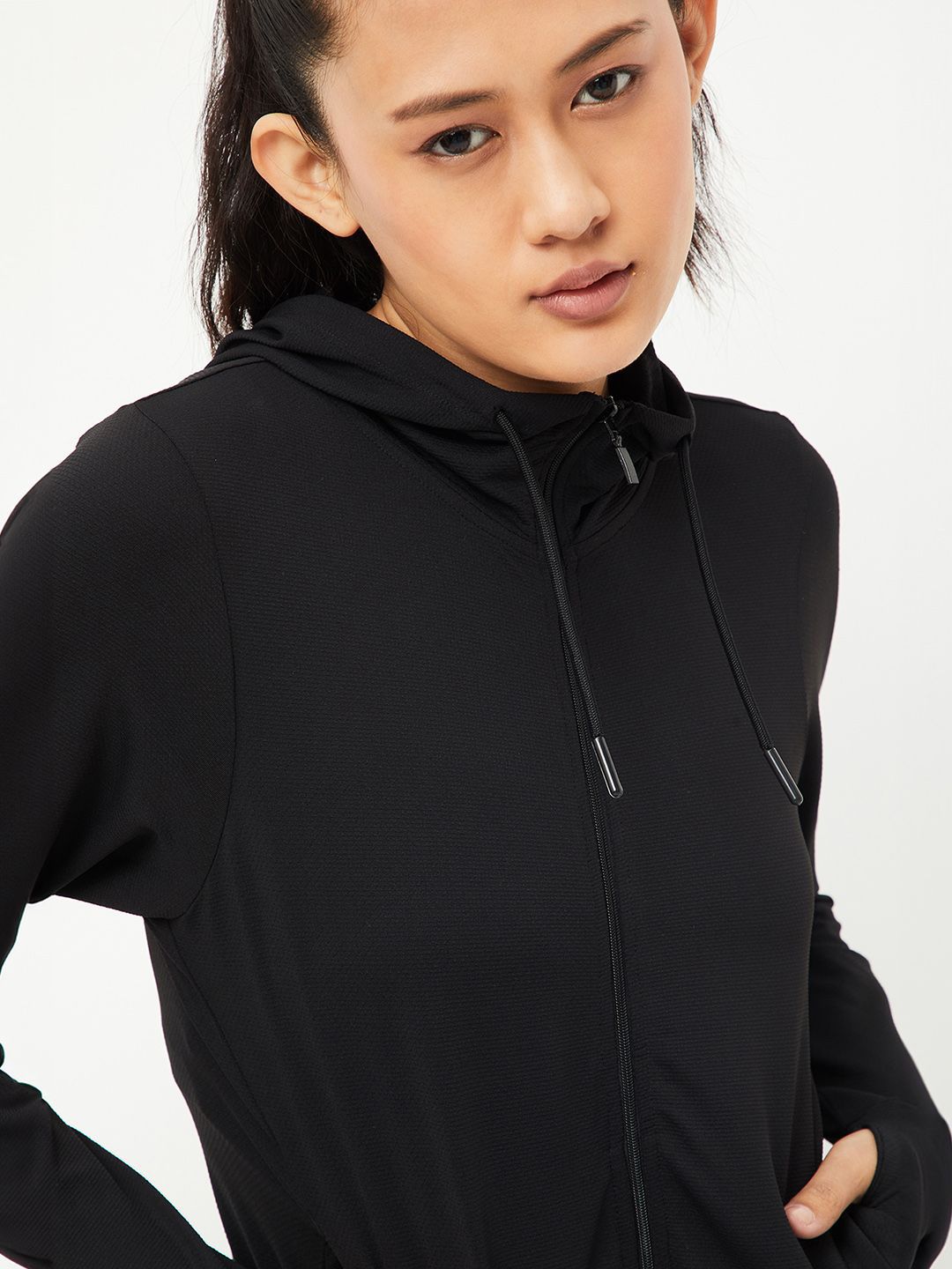 max Women Solid Hooded Bomber Jacket