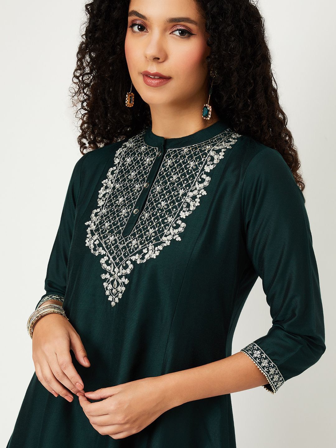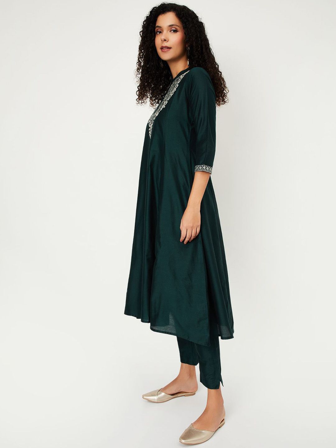 max Yoke Design Mandarin Collar A-Line Kurta With Trouser