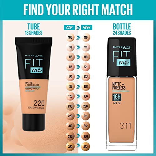 New formula with longer wear and SPF22 16 hour oil control for a natural matte finish Oil-free formula does not clog pores Dermatologist tested, suitable for sensitive skin Maybelline New York Fit Me Matte & Poreless Liquid Foundation. Provides full coverage.