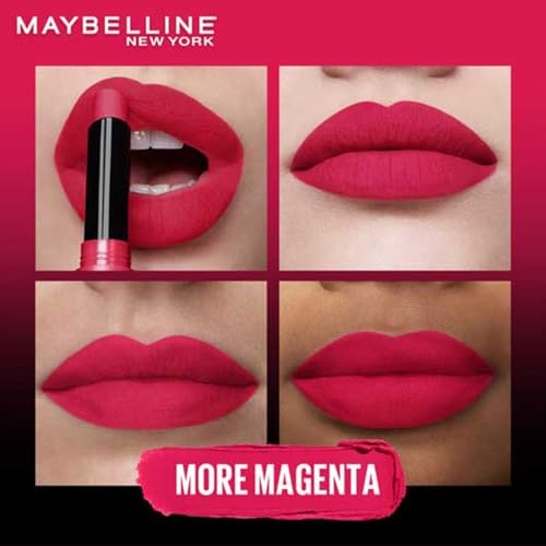 Maybelline New York Lipstick, Matte Finish, Bold Colour, Enriched With Jojoba Oil, Color Sensational Ultimattes, 399 More Magenta, 1.7 g