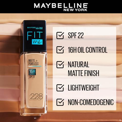 PERFECT MATTE FINISH MAKEUP COMBO SET: The Maybelline foundation and concealer combo includes the Fit Me Foundation shade 128 and Fit Me concealer shade 25 which give a matte finish and even tone to your base makeu giving a second skin like flawless matte coverage. OIL-FREE NON COMEDOGENIC FORMULA: The Fit Me Foundation and concealer have a lightweight, oil-free formula, making them suitable for daily use. The foundation is ideal for normal to oily skin while the concealer is best suited for all skin types. 16 HR OIL CONTROL + SUN PROTECTION: The Maybelline Fit Me foundation with SPF 22 protects your skin from the sun & gives 16 hours of oil control. PROVIDES SEAMLESS COVERAGE: The Maybelline foundation and concealer combo provides a seamless and natural coverage to give you an even skin tone. This Value Combo kit contains Fit Me Matte + Poreless Foundation, 30ml + Fit Me Concealer.