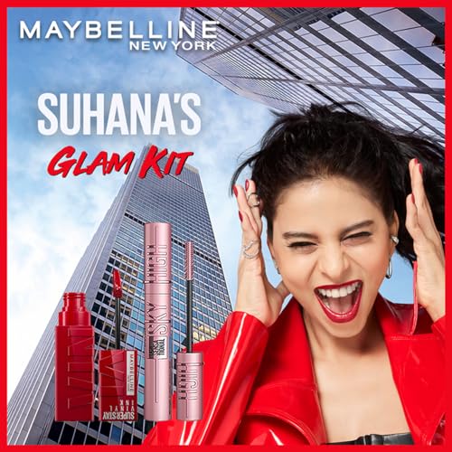 Maybelline New York Suhana's Glam Kit - Super Stay Vinyl Ink Shade Lippy & Lash Sensational Sky High Mascara (6+4.2 ml) with a Travel Pouch Free