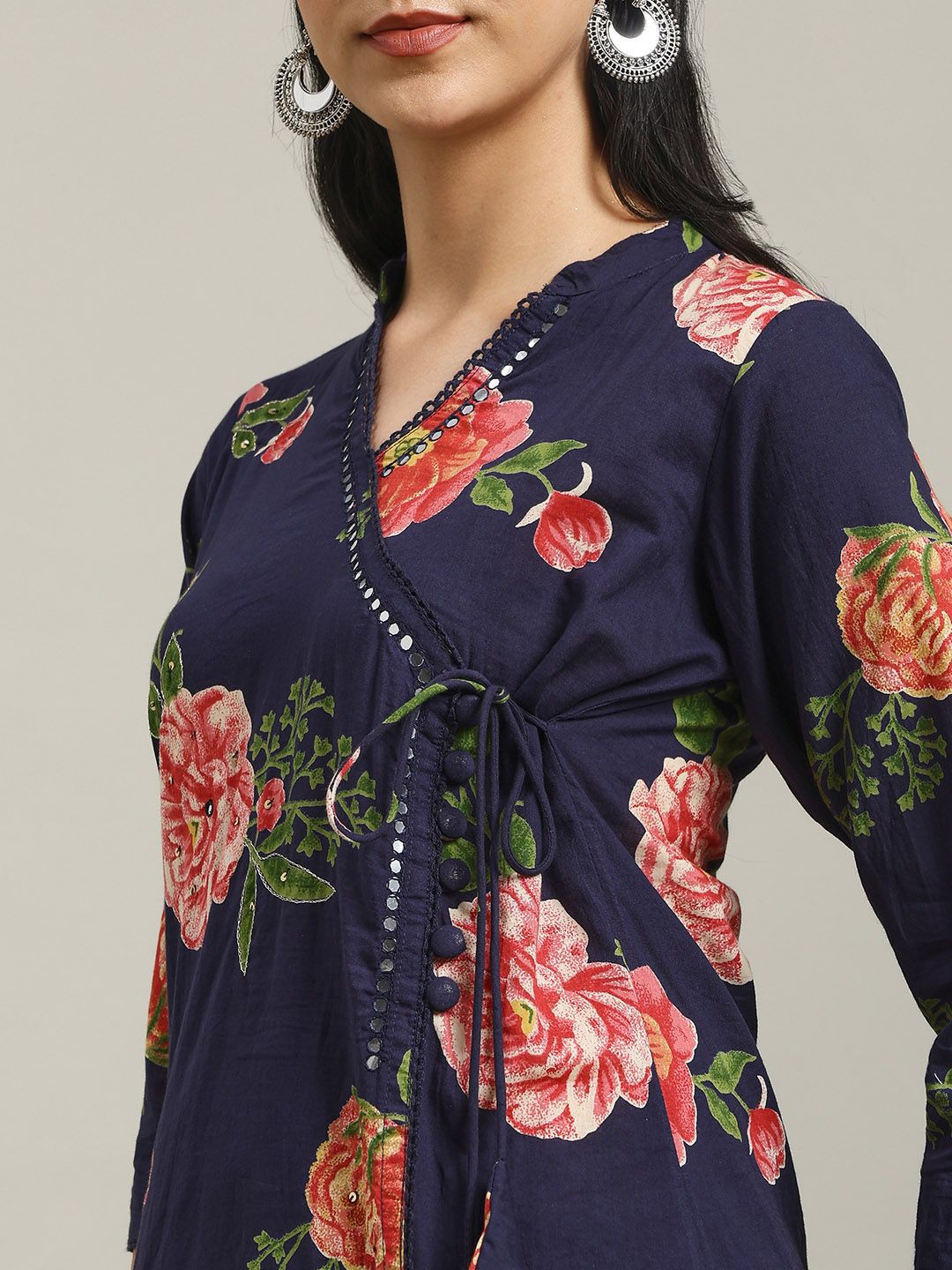 Buy this stylish Meena Bazaar Floral Printed Mirror Work V-Neck Kurta With Trousers & Dupatta at Marincart Nepal. This product offers great quality and value. Perfect for those looking for the latest trends in fashion. Get yours now at unbeatable prices.