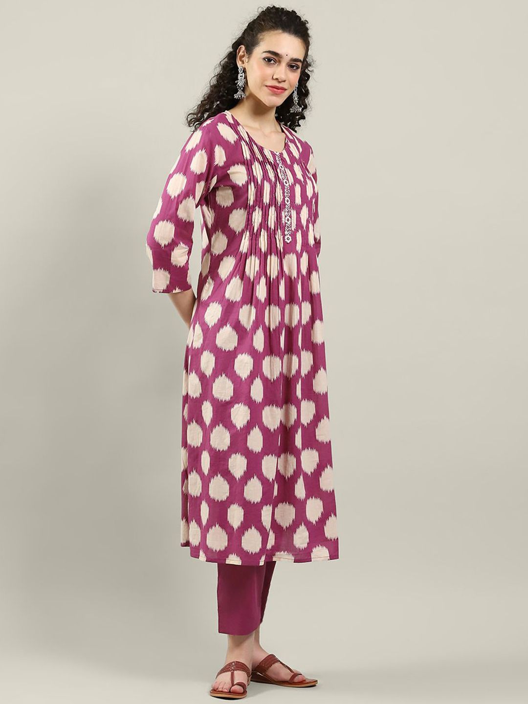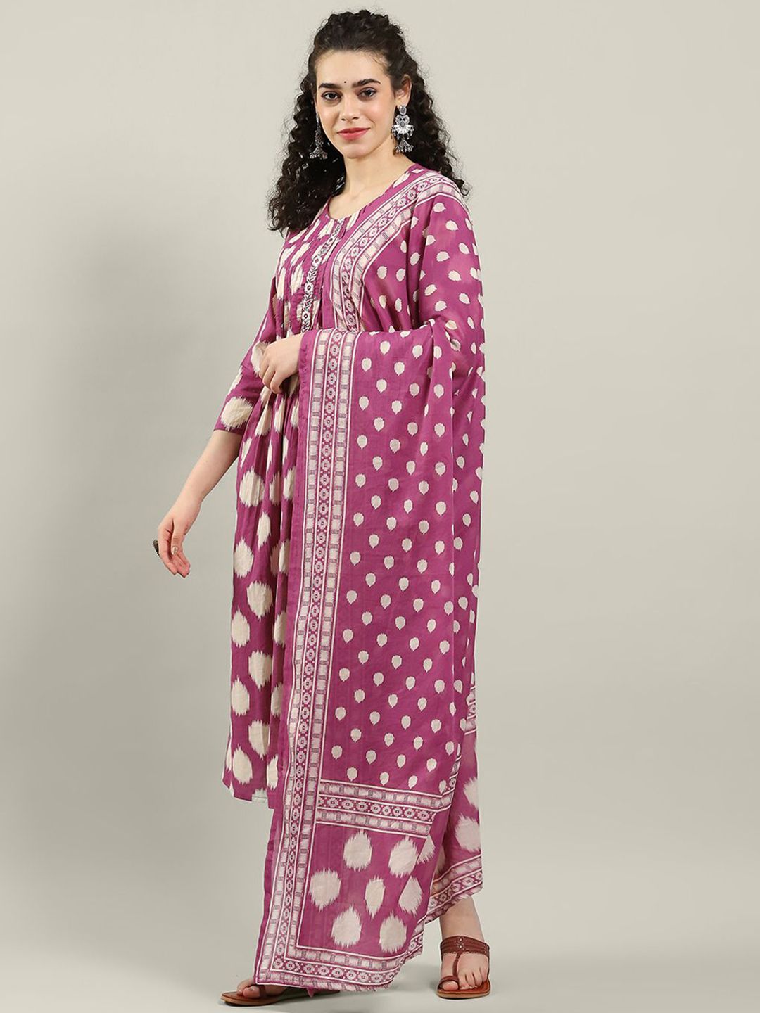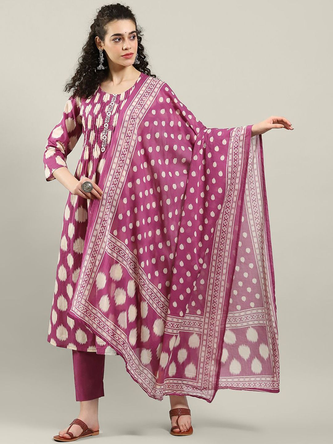 Meena Bazaar Floral Printed Round-Neck Kurta With Trousers & Dupatta