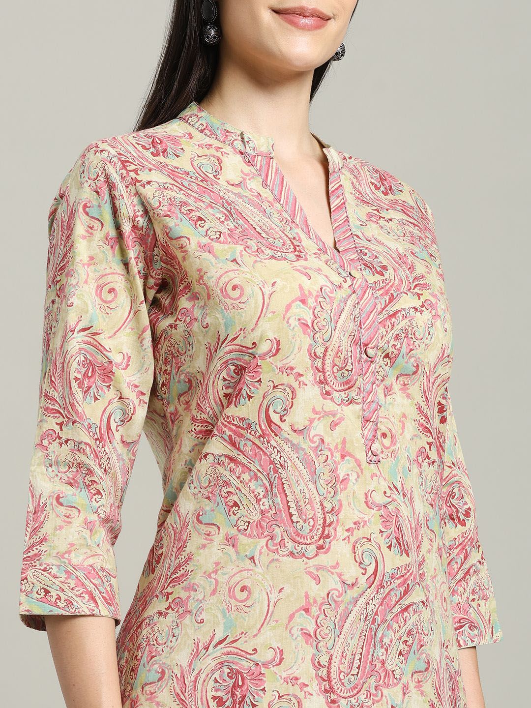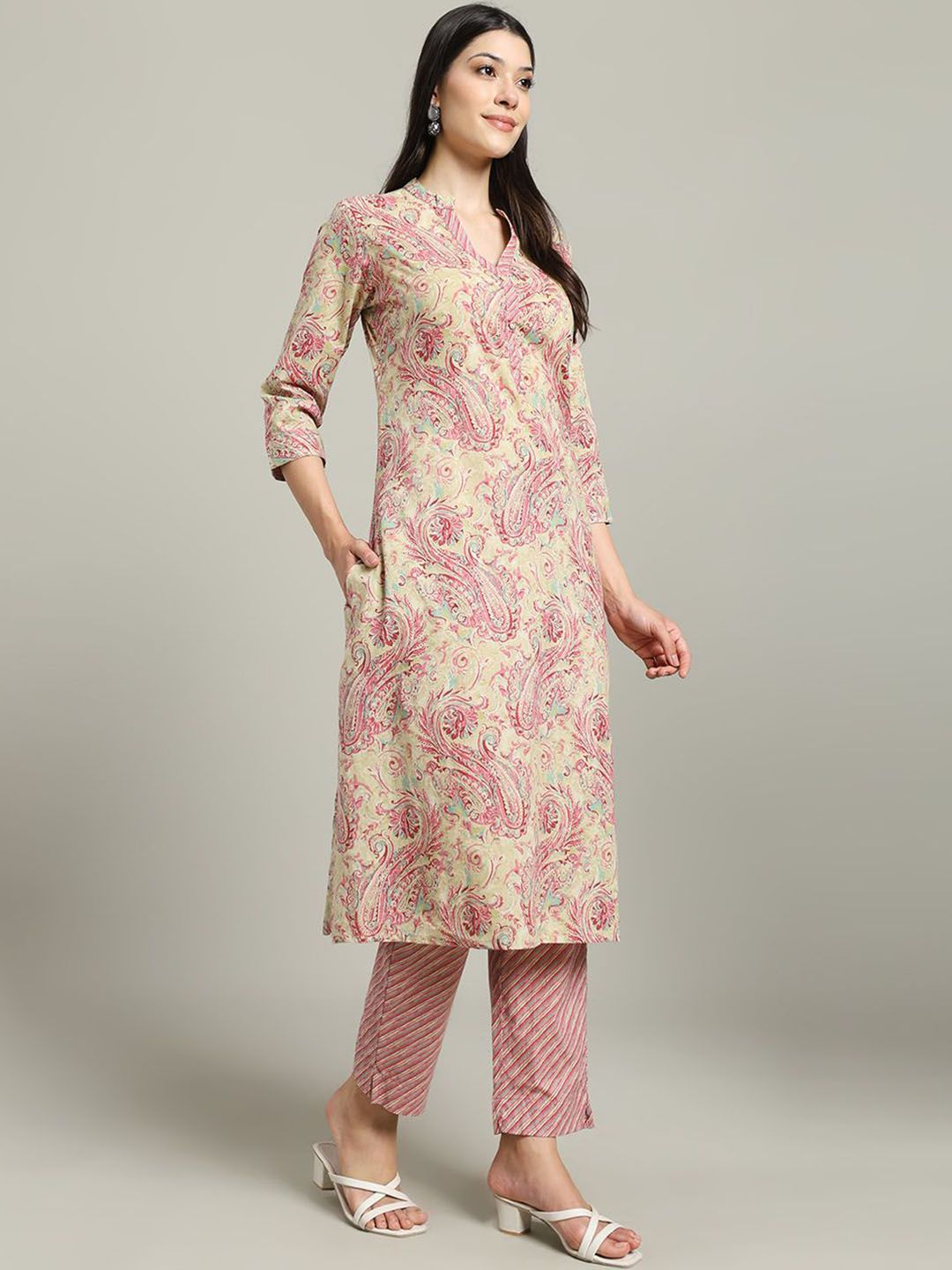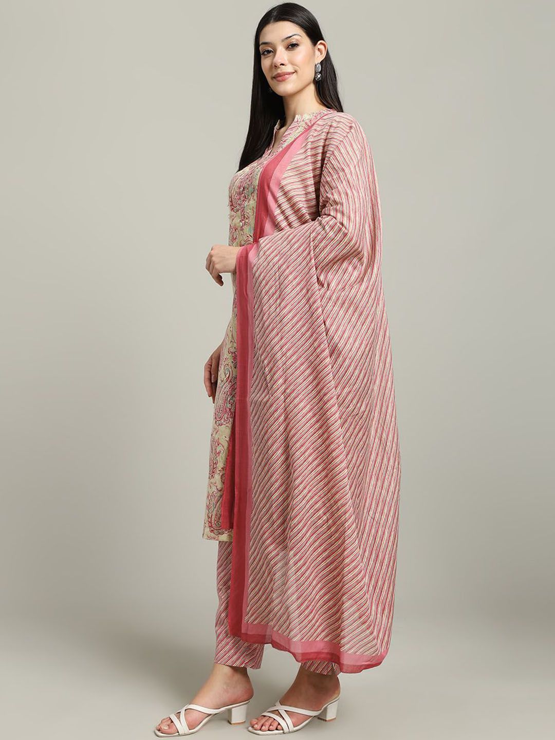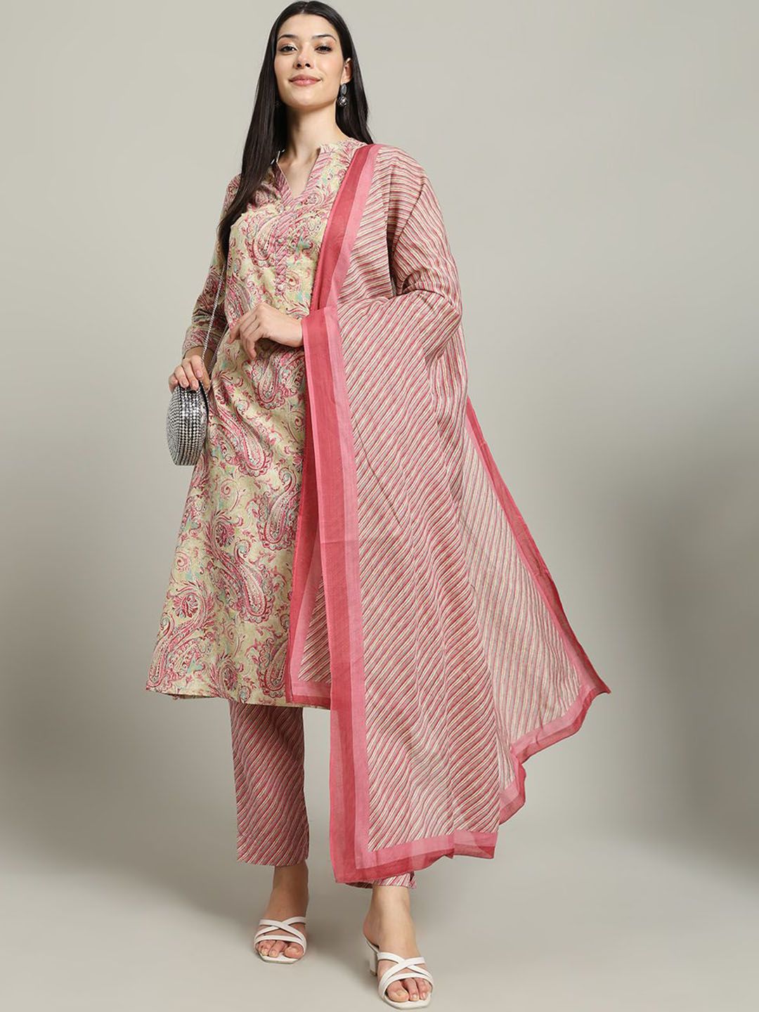 Meena Bazaar Paisley Printed Mandarin Collar Kurta With Trousers & Dupatta