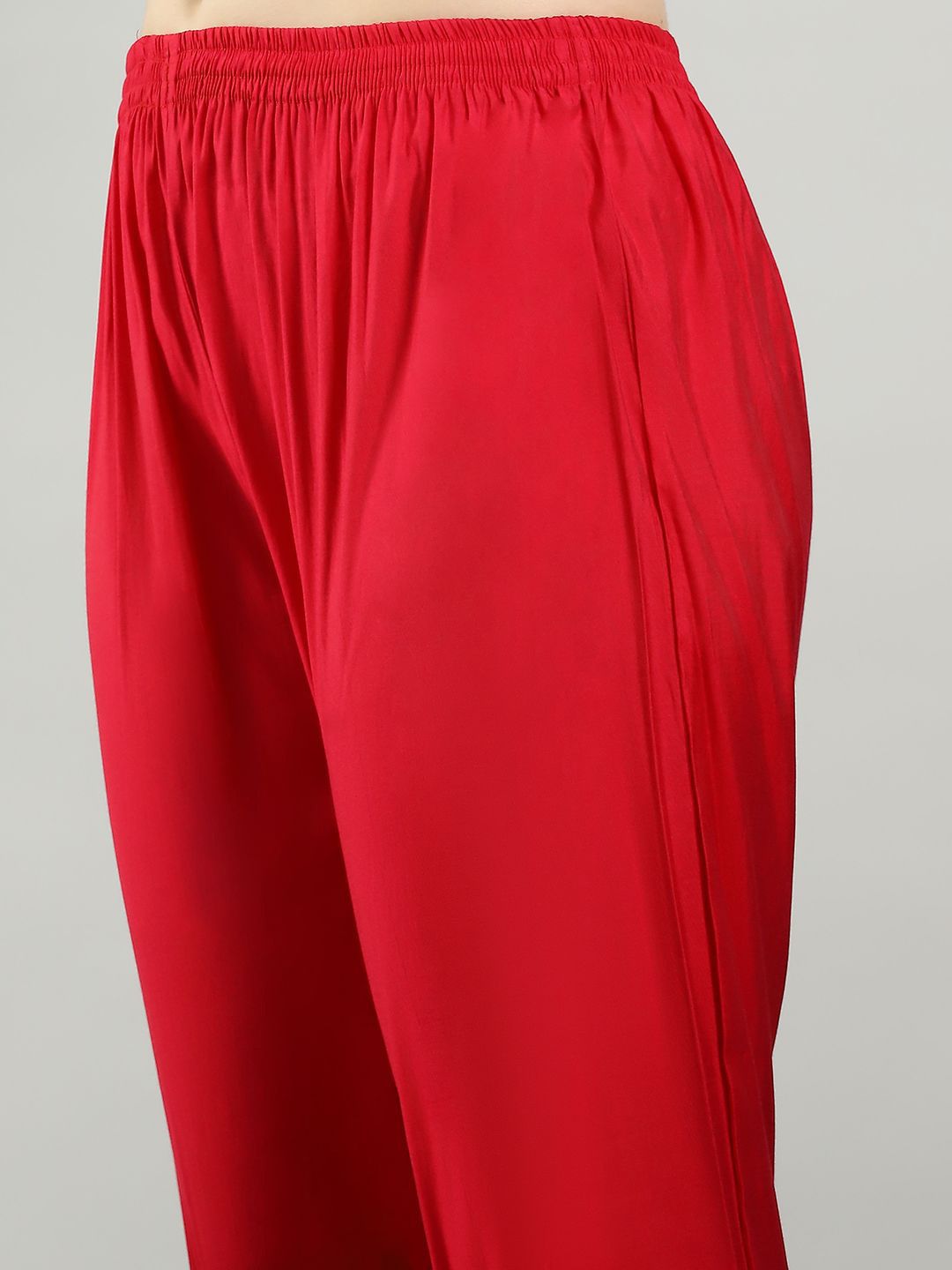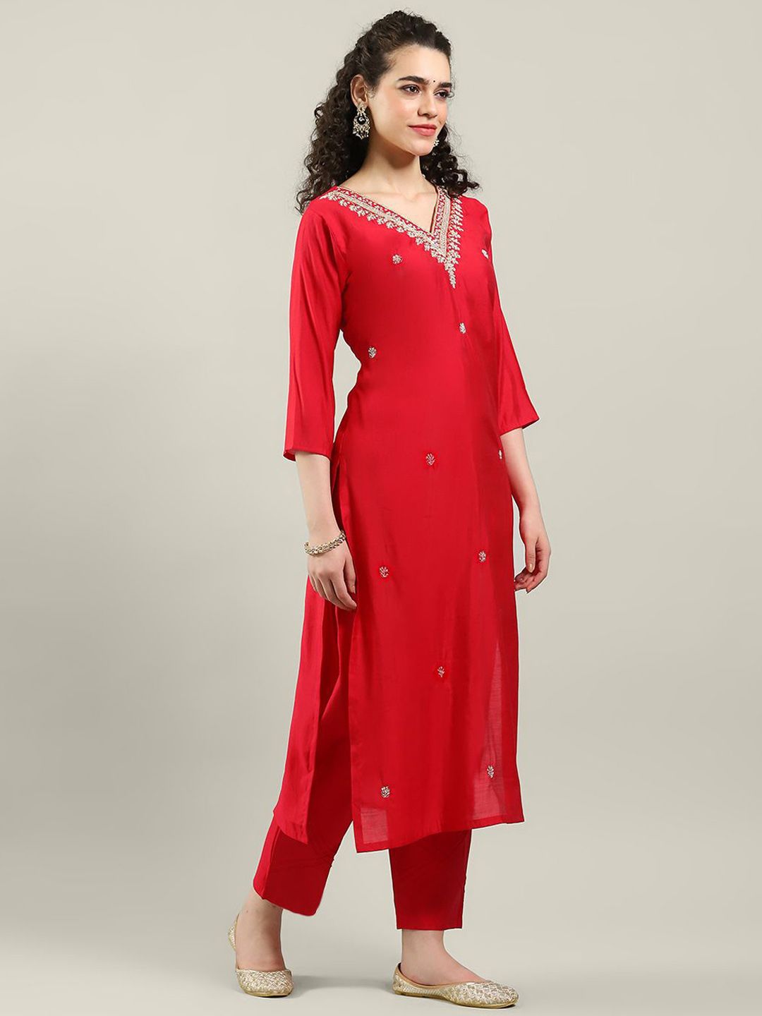 Meena Bazaar Women Embroidered Calf Length Regular Straight Kurta with Trousers