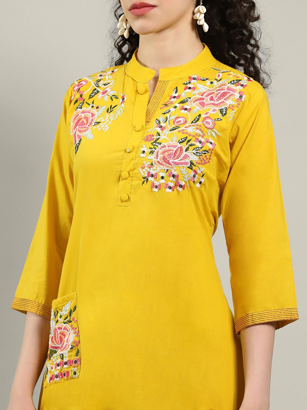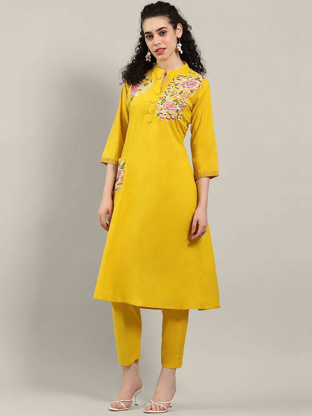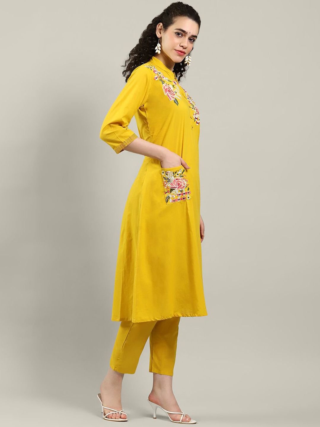 Meena Bazaar Women Floral Embroidered Kurta with Trousers