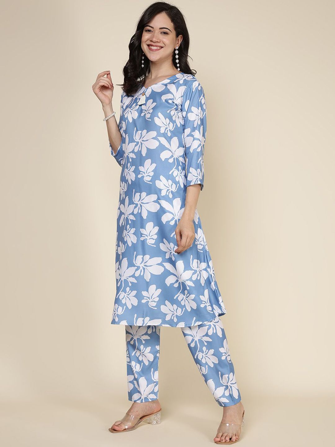 Meena Bazaar Women Floral Printed Regular Kurta with Trousers
