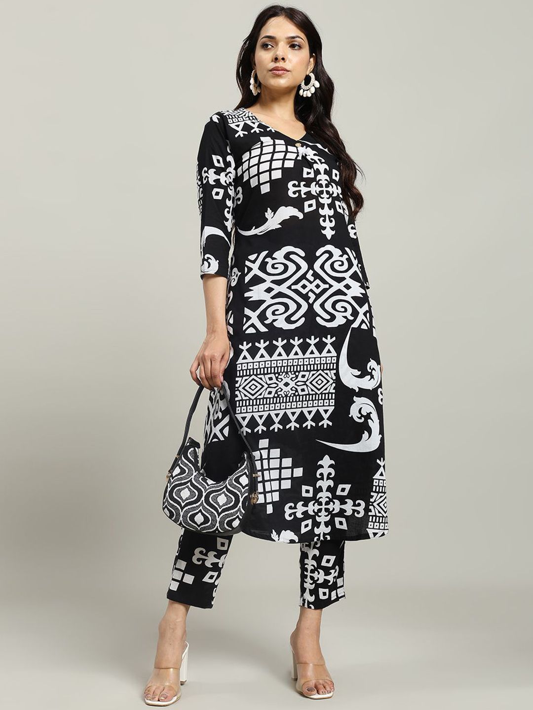 Meena Bazaar Women Geometric Printed Kurta with Trousers