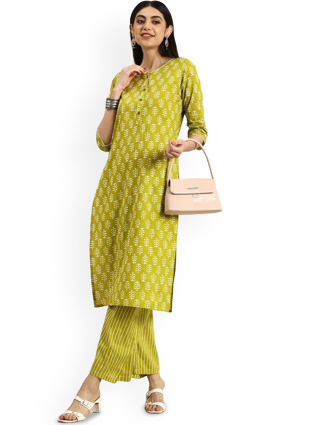 MEERA FAB Women Ethnic Motifs Printed Cotton Kurta with Palazzo