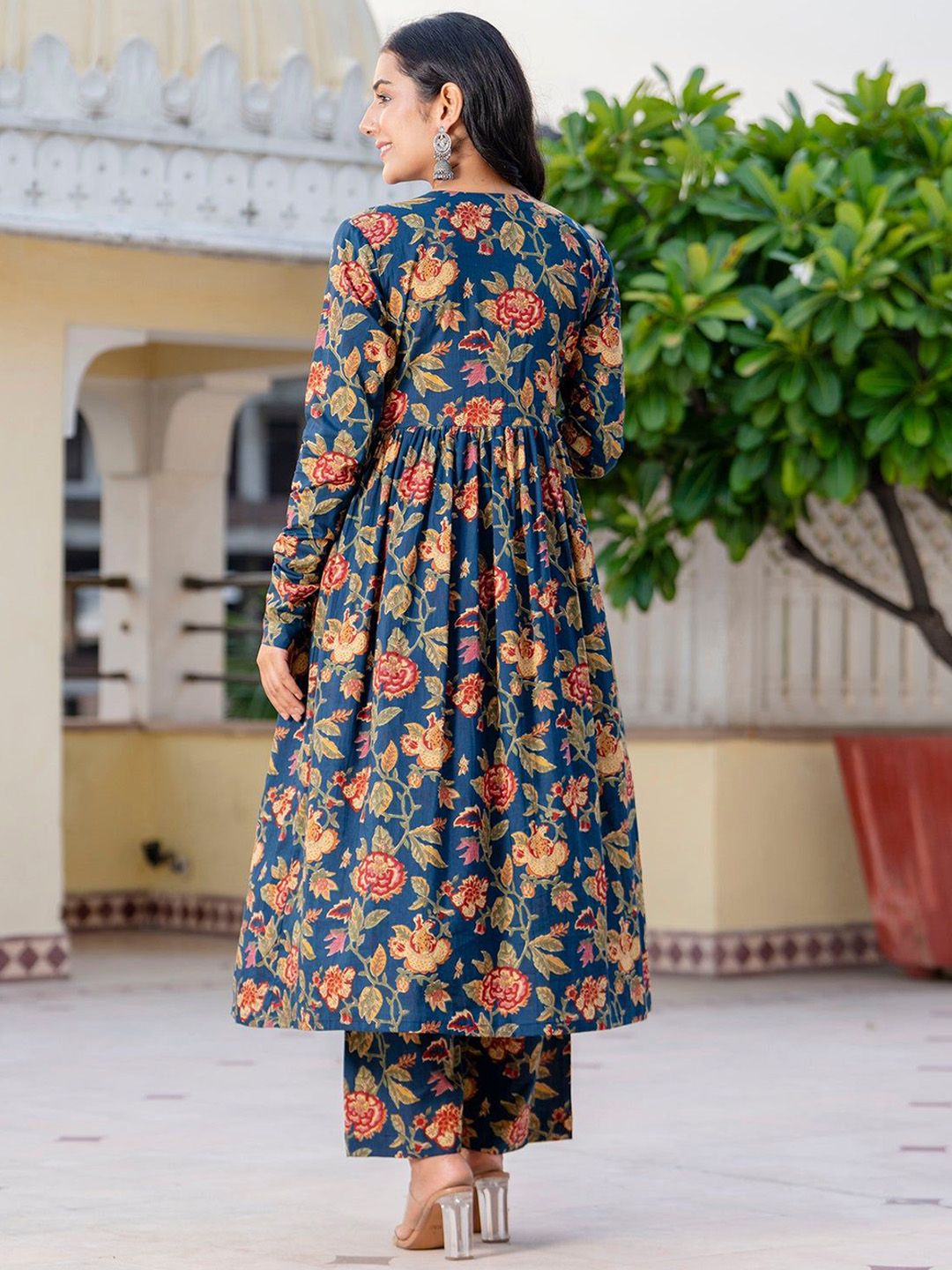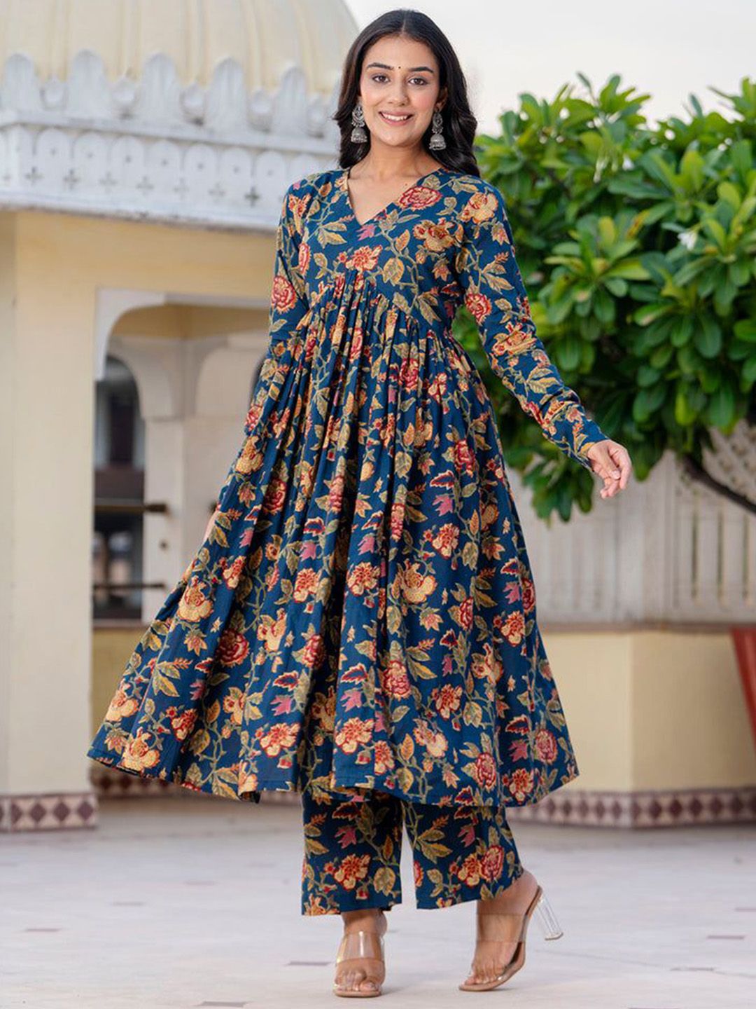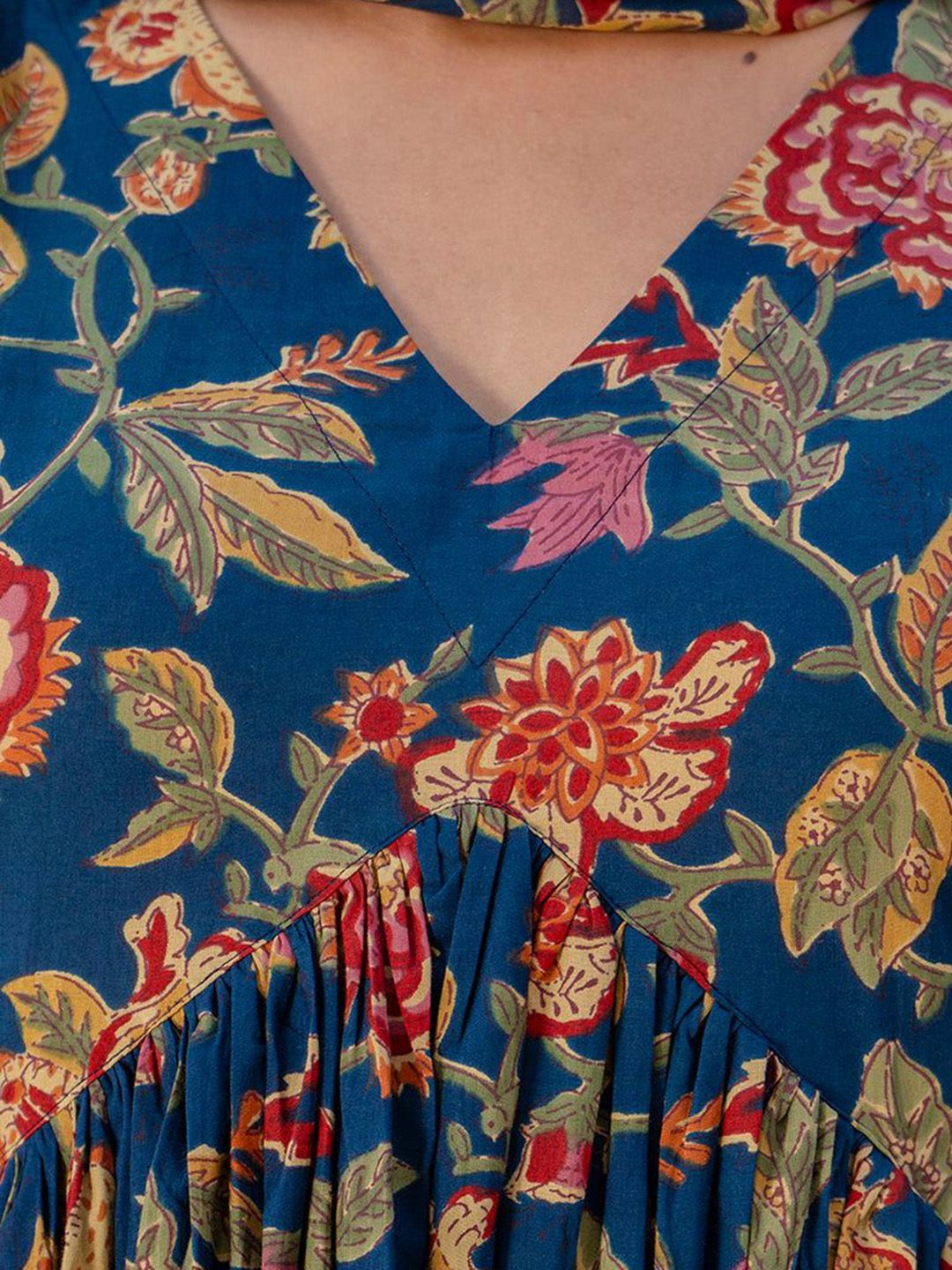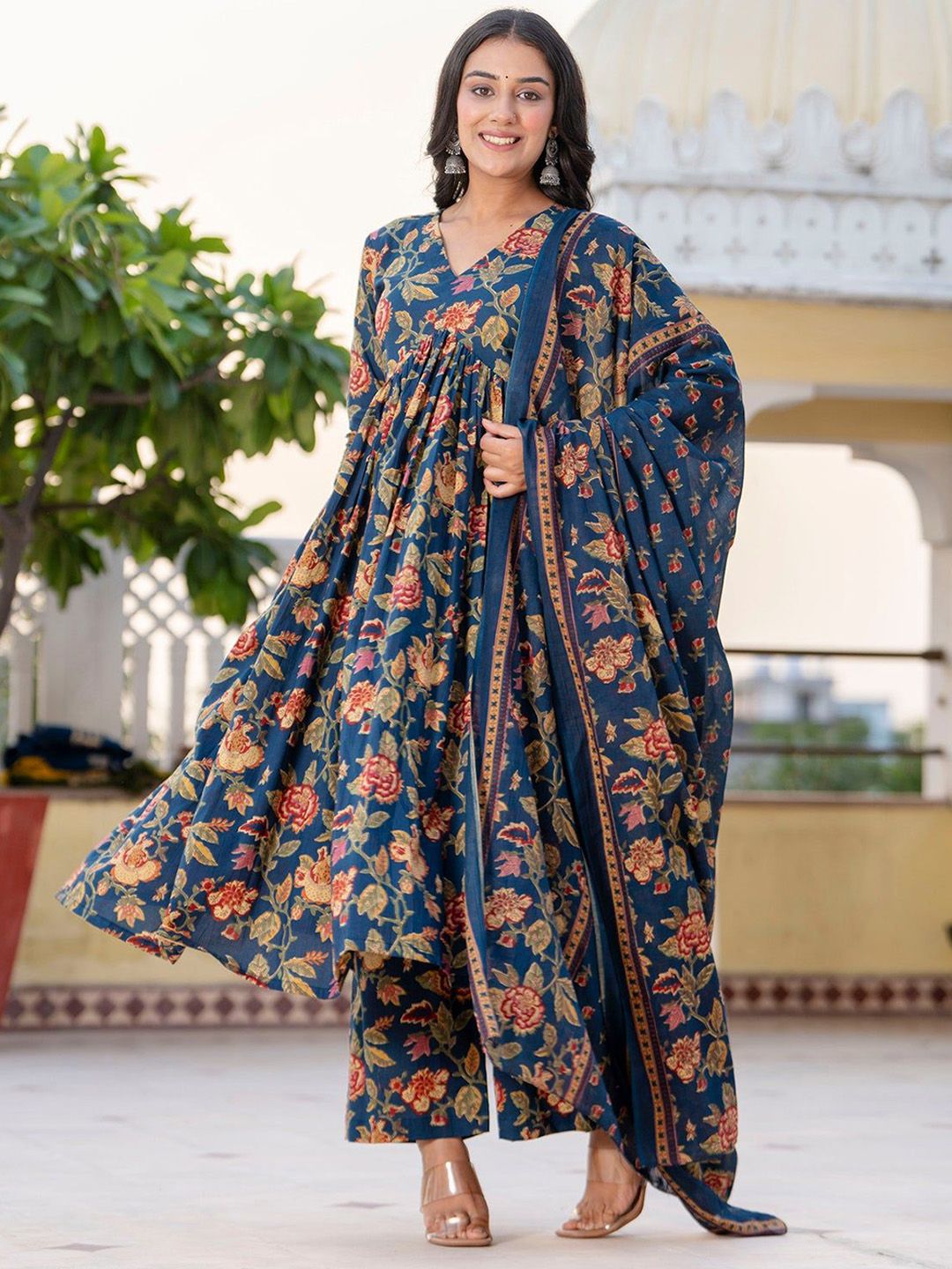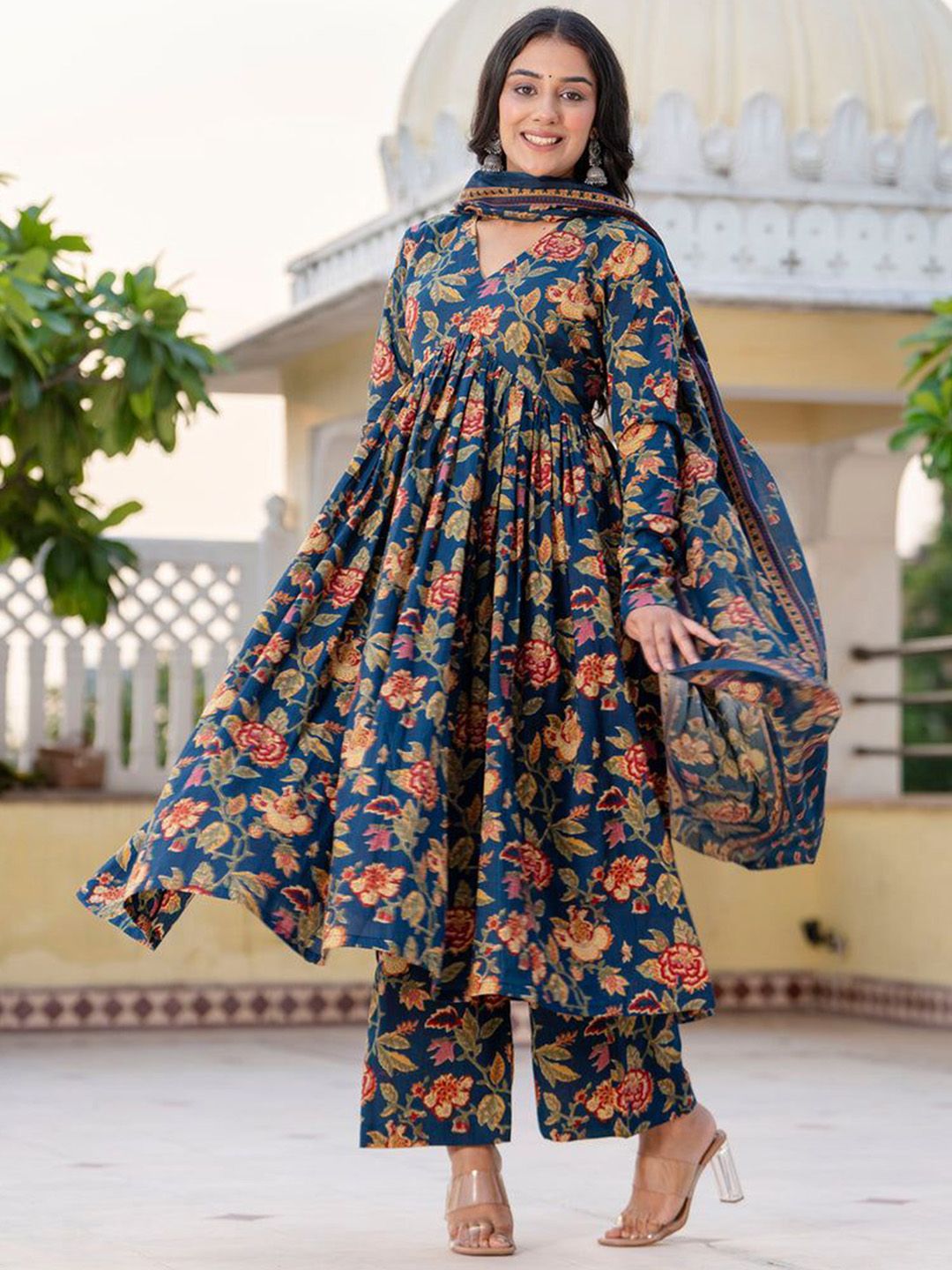 MEERA FAB Women Floral Printed Empire Pure Cotton Kurta with Trousers & Dupatta