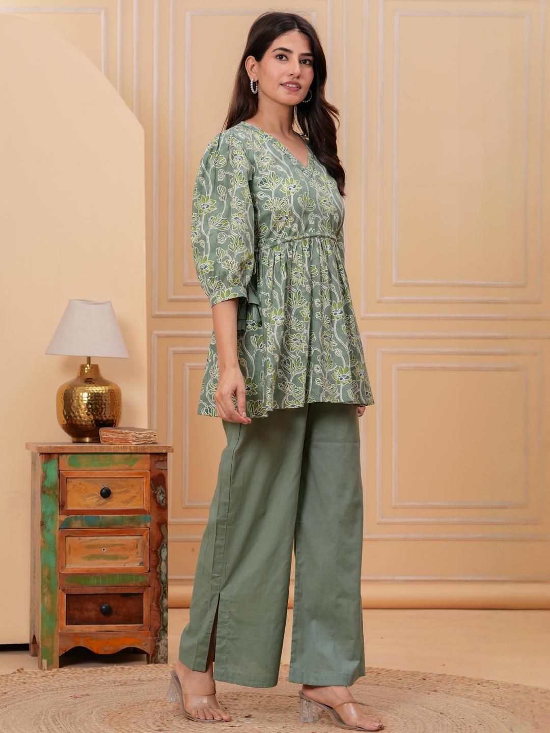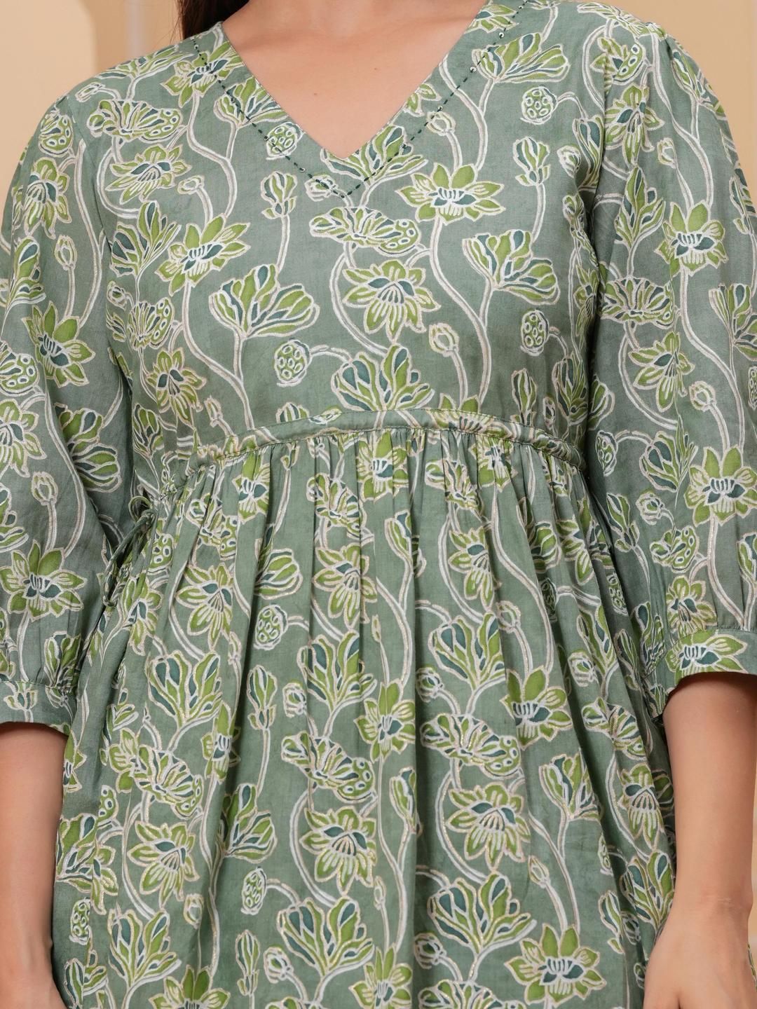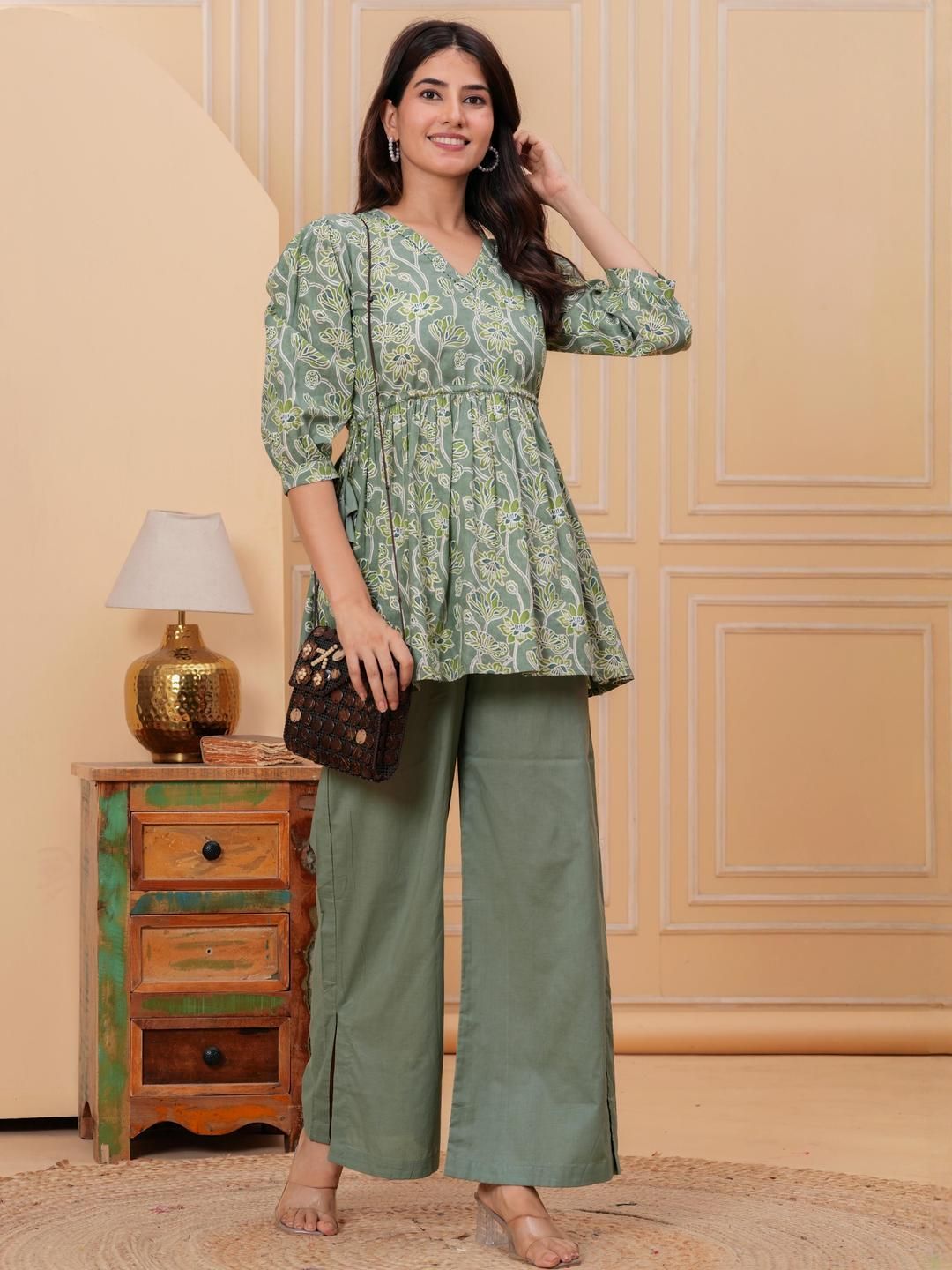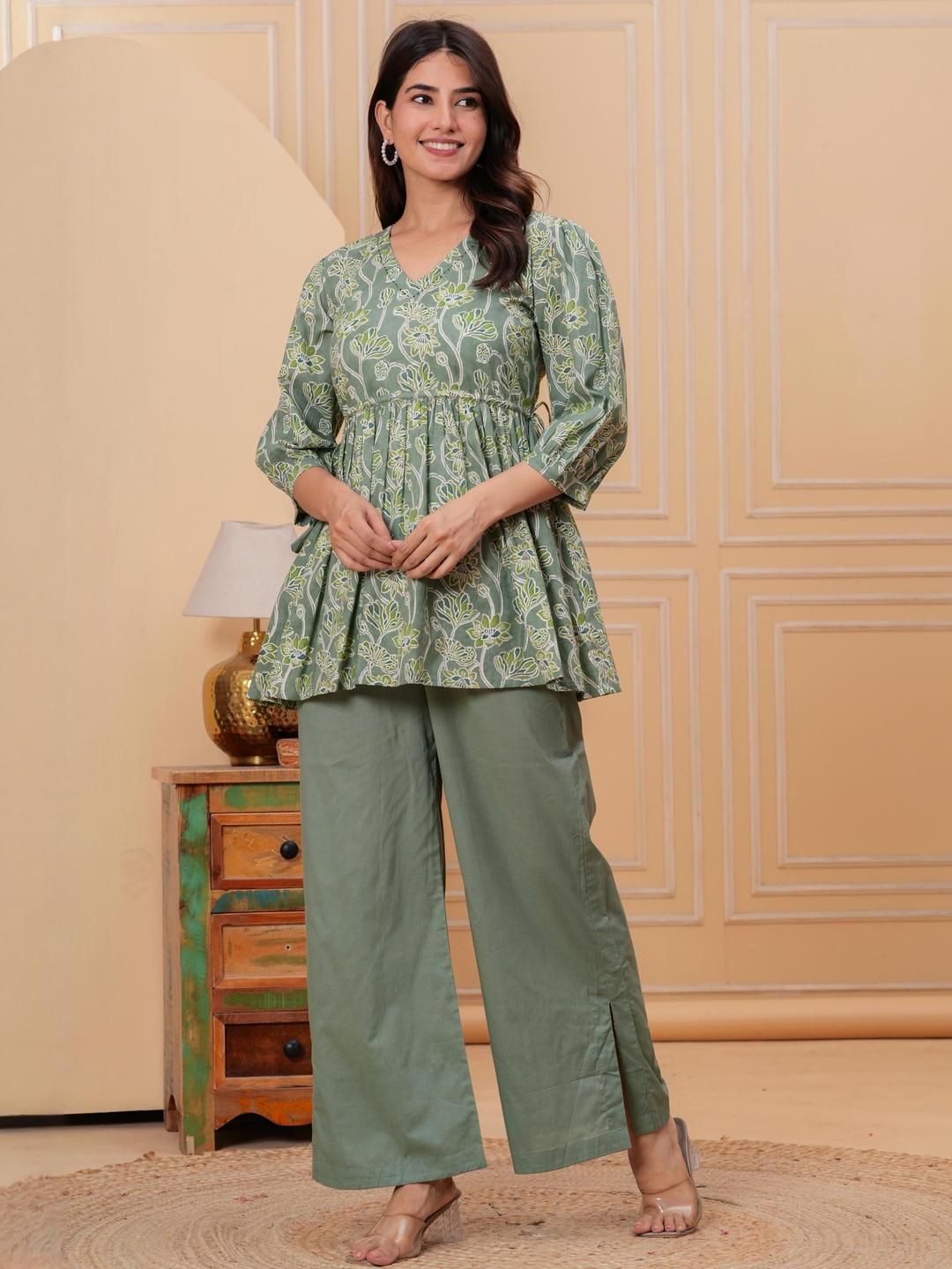 Meeranshi Women Floral Printed Cotton A-Line Kurta with Palazzos