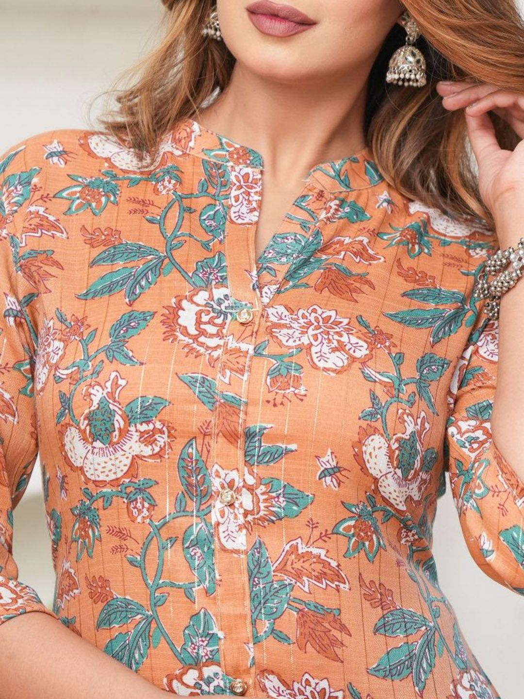 Buy this stylish Mehsoos Floral Printed Mandarin Collar Pure Cotton Straight Kurta With Trousers at Marincart Nepal. This product offers great quality and value. Perfect for those looking for the latest trends in fashion. Get yours now at unbeatable prices.