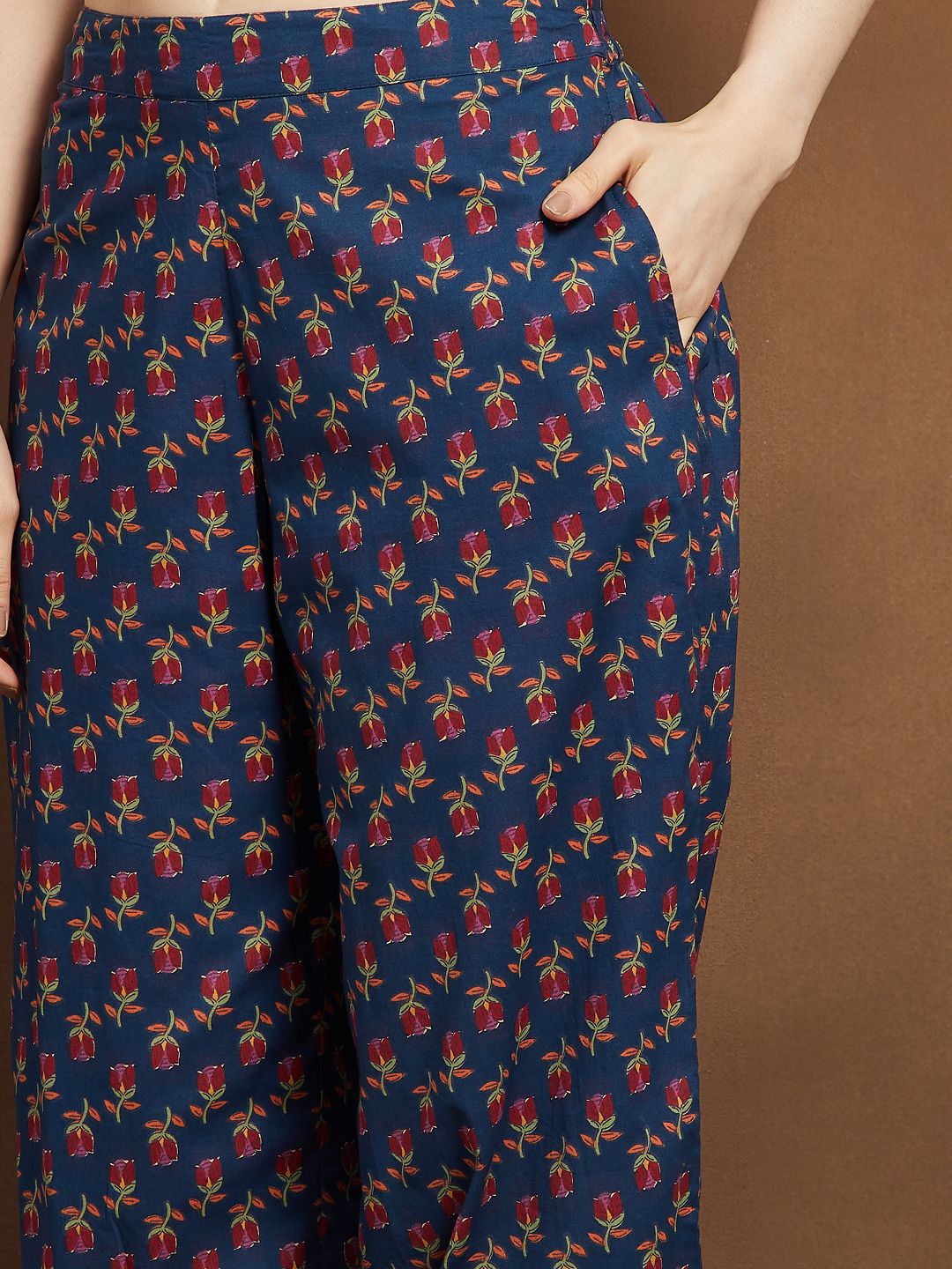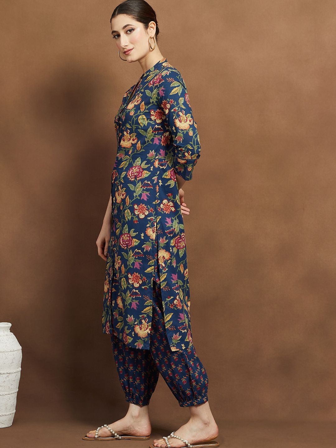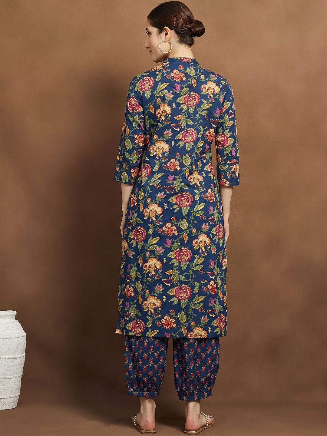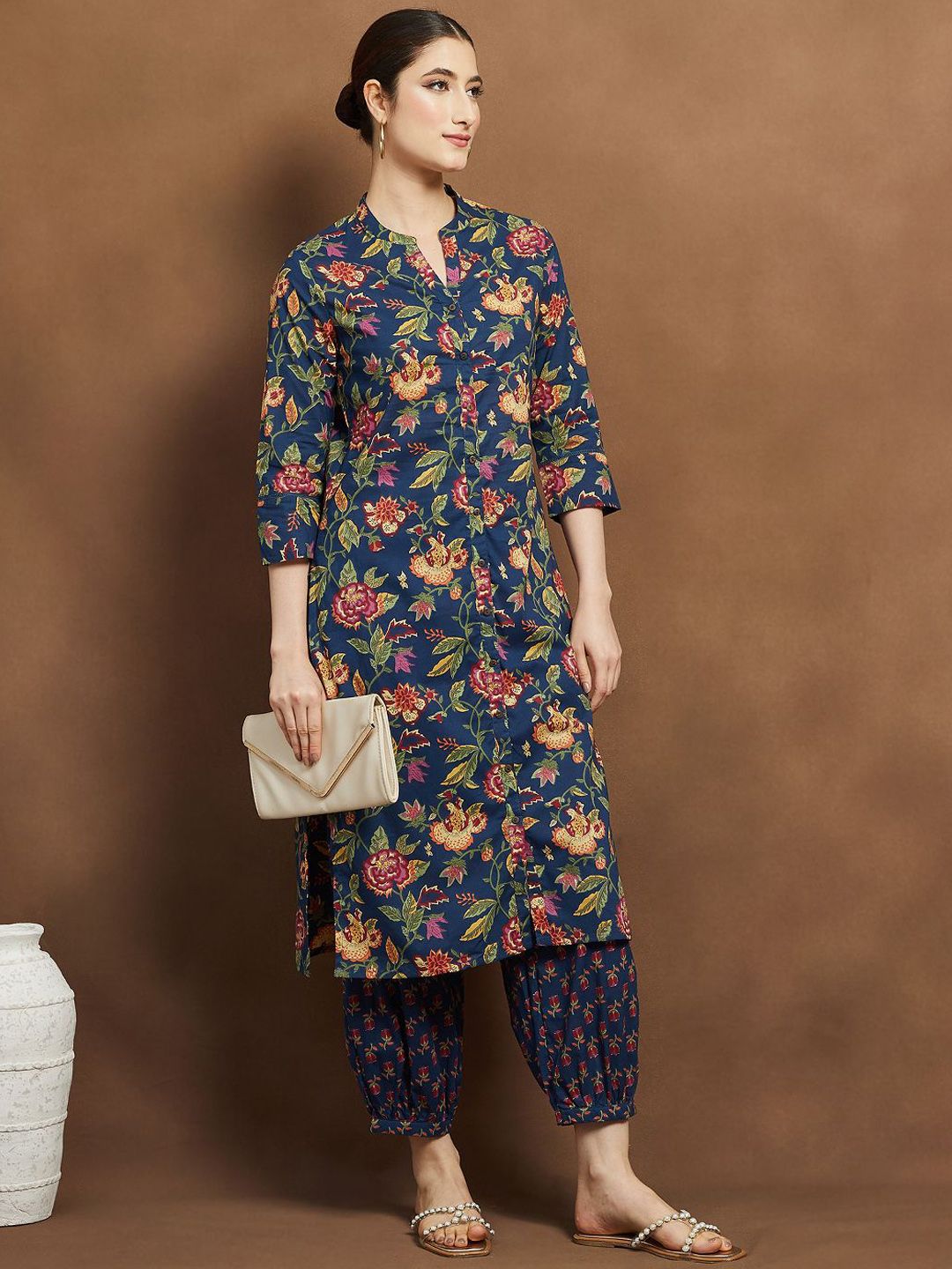 Melange by Lifestyle Floral Printed Mandarin Collar Straight Pure Cotton Kurta With Salwar