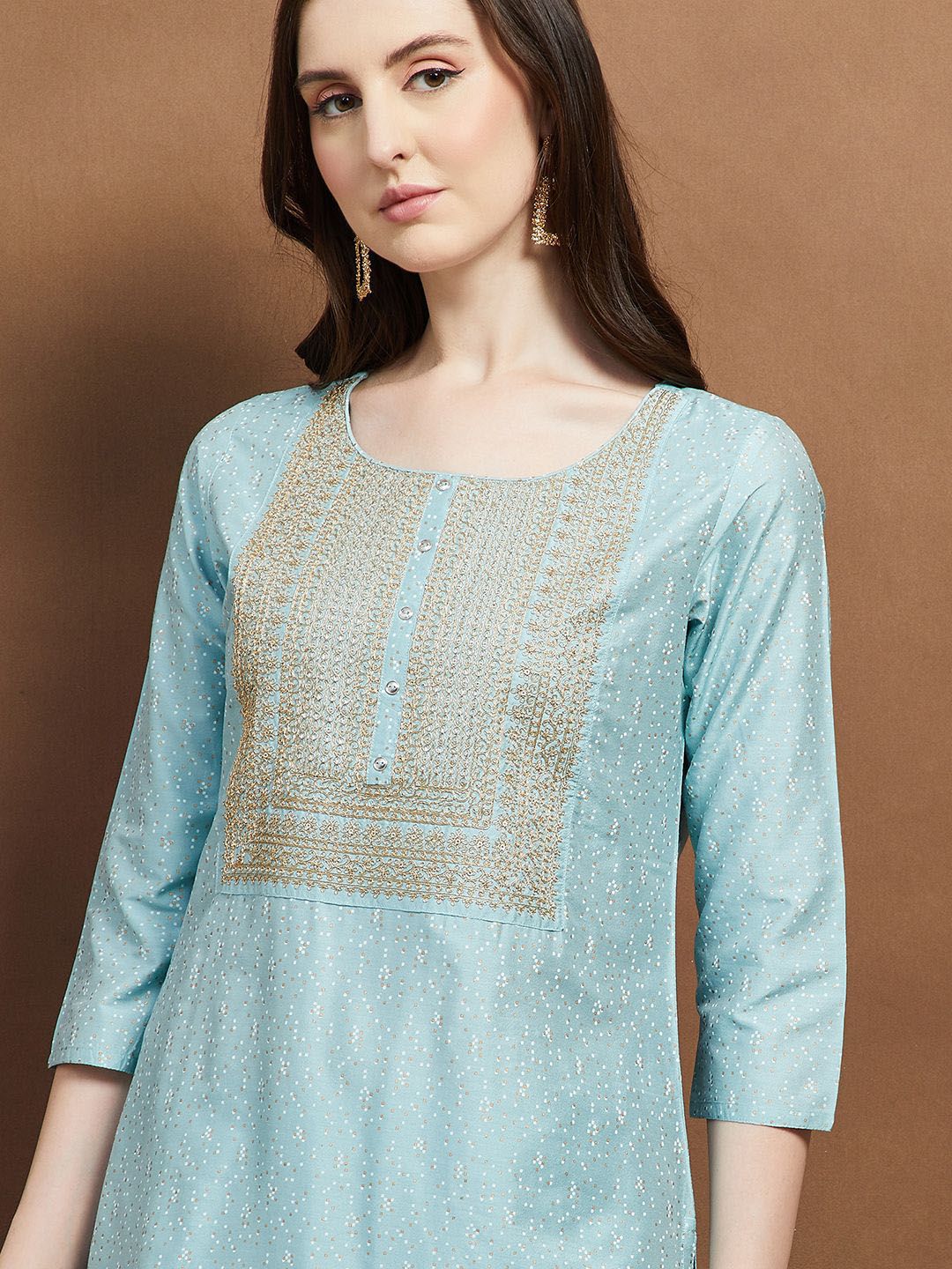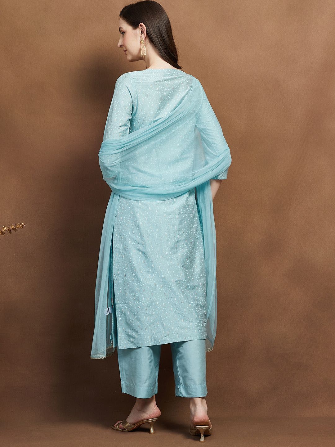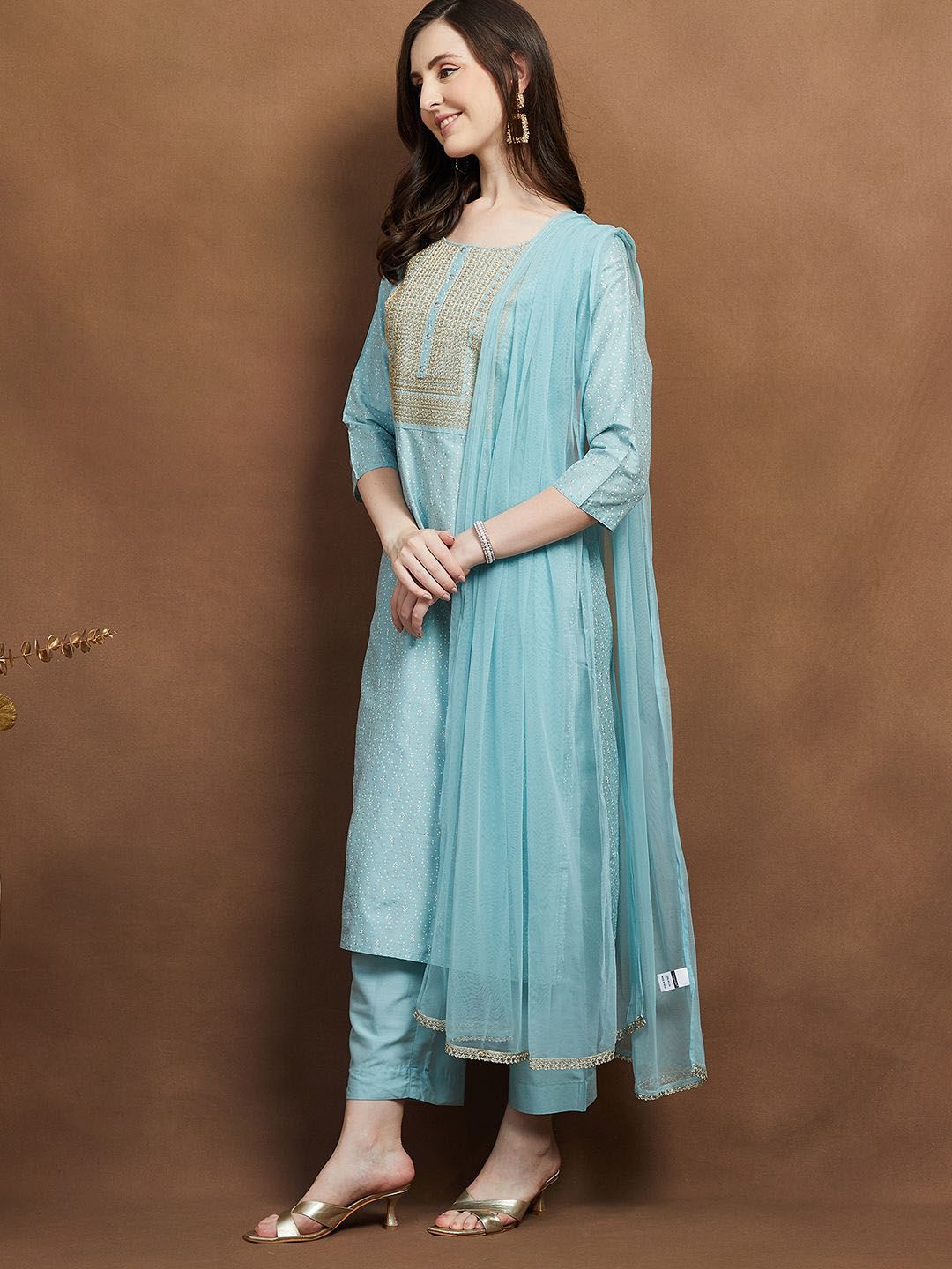 Melange by Lifestyle Women Ethnic Motifs Embroidered Kurta with Palazzos & Dupatta