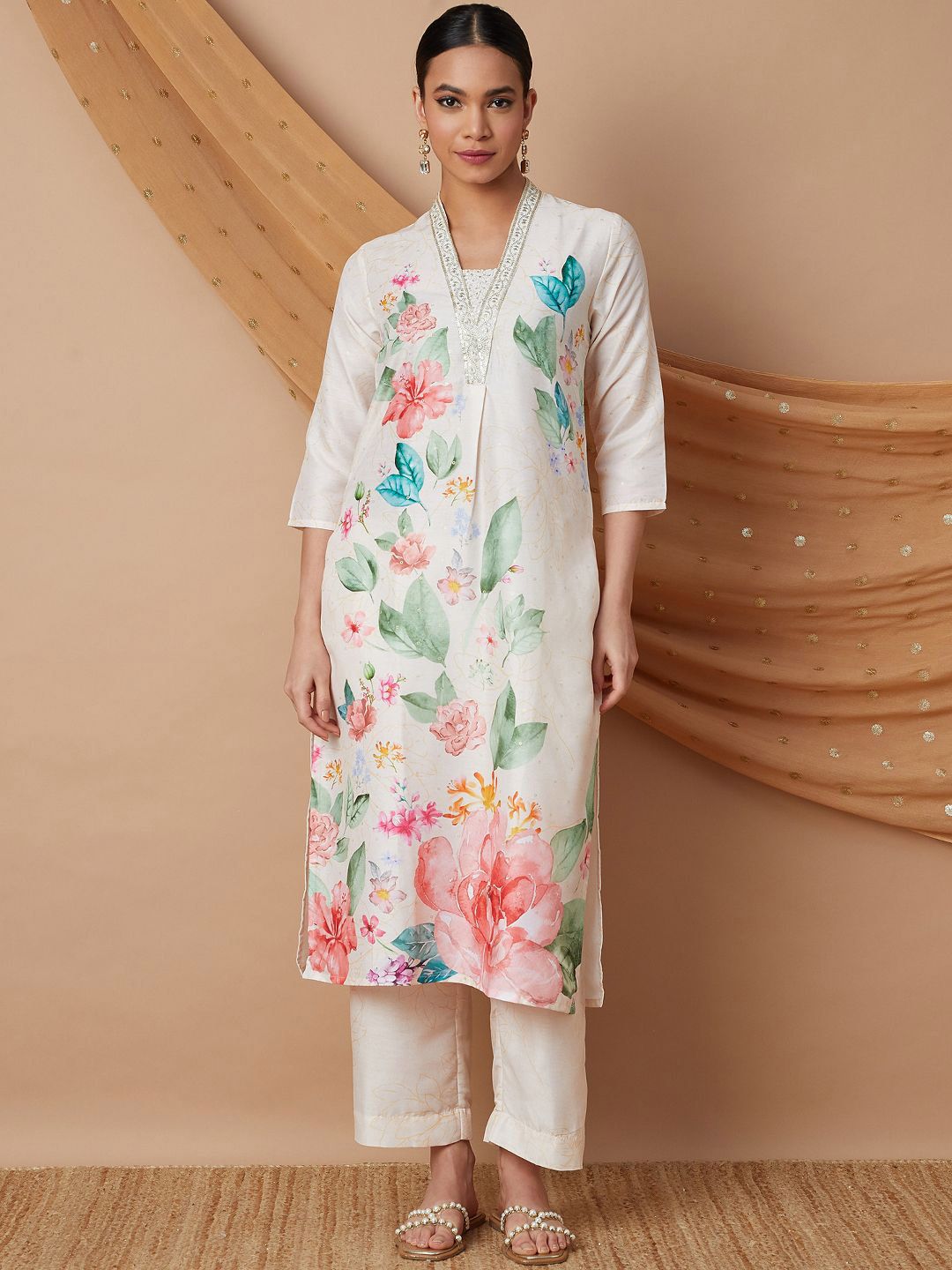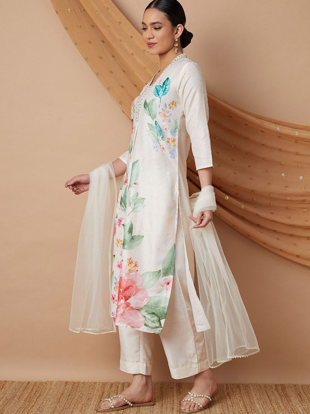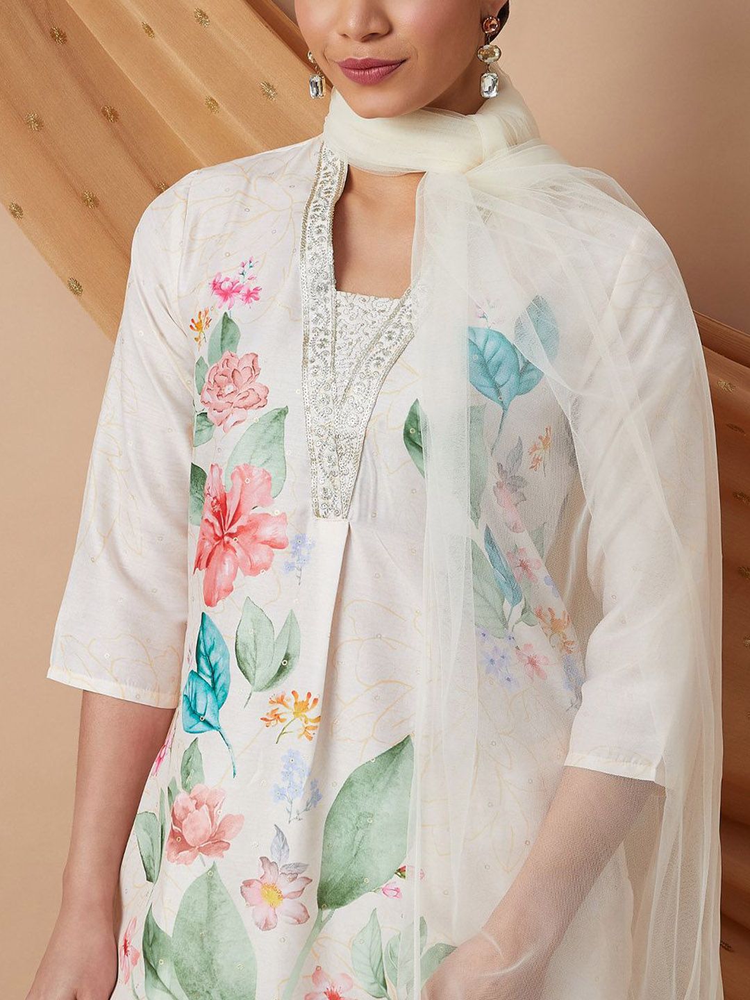 Melange by Lifestyle Women Floral Printed Kurta with Trousers & Dupatta