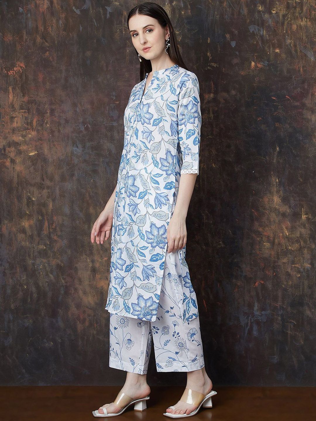 Melange by Lifestyle Women Floral Printed Layered Pure Cotton Kurta with Palazzos