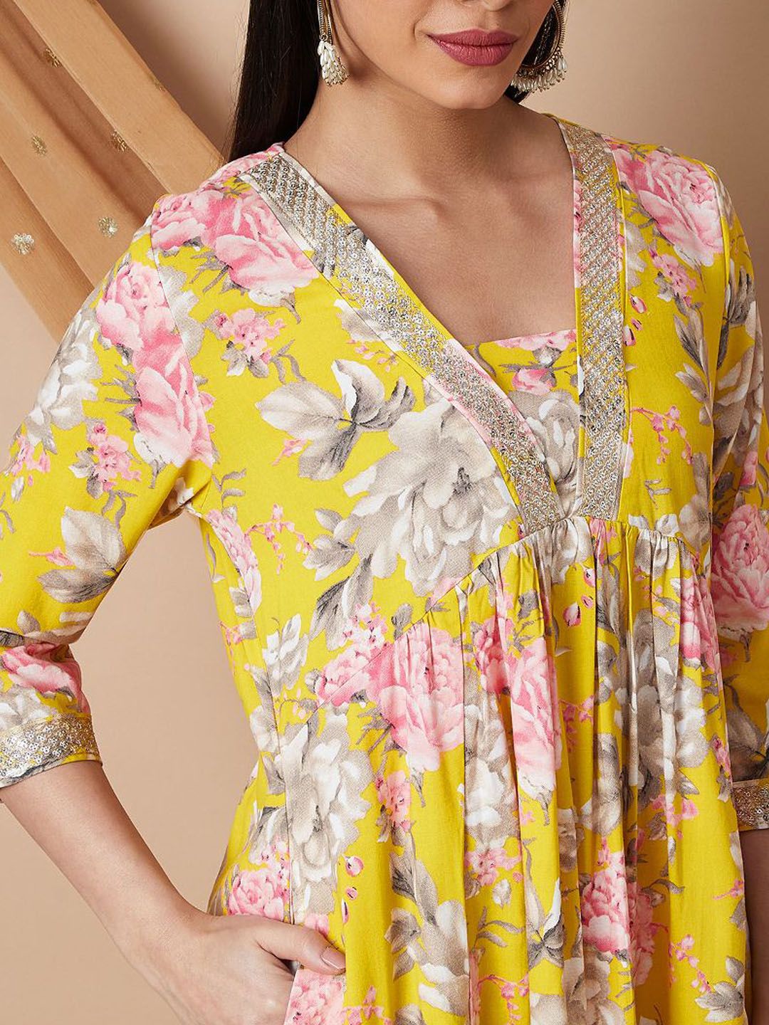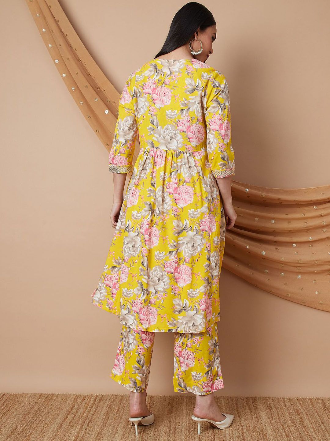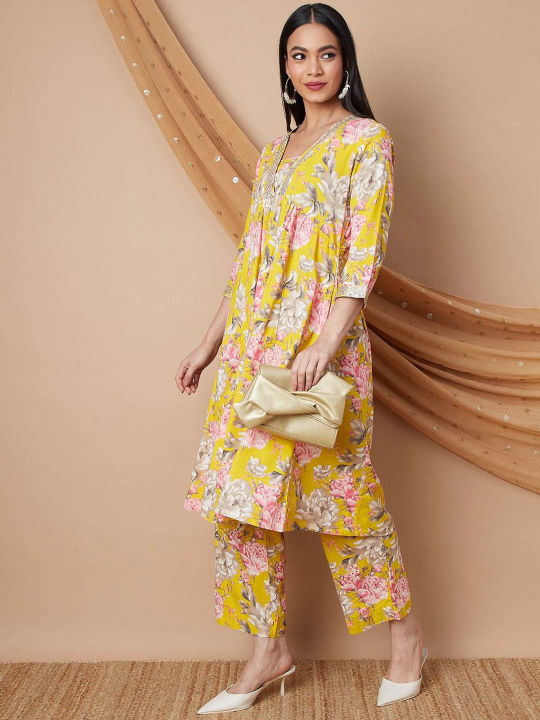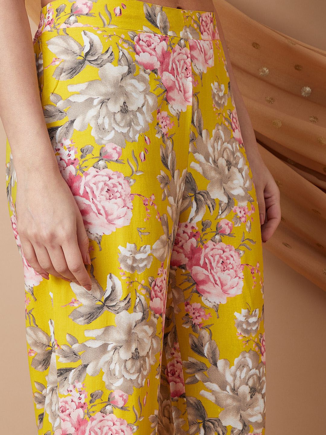 Melange by Lifestyle Women Floral Printed V-Neck Kurta with Palazzos