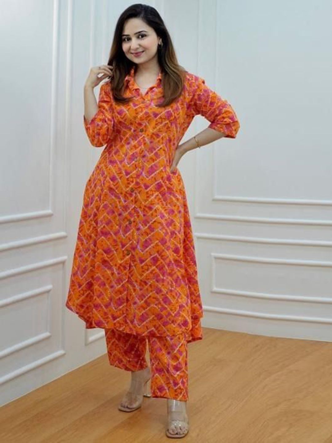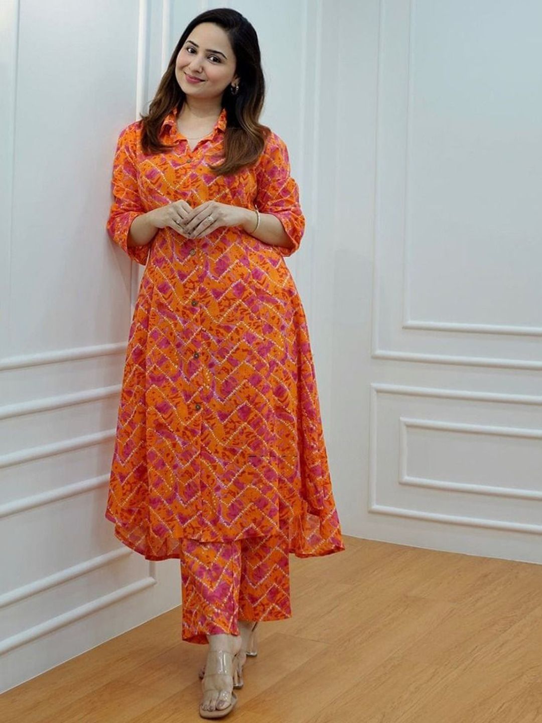 MHIZHA Abstract Shirt Collar A-Line Kurta With Palazzos