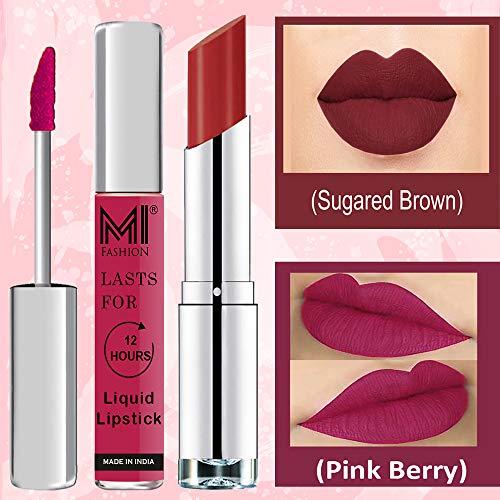 MI Fashion Made in India Lipstick Combo Offers 100% Veg Long Lasting - Pink Liquid Matte Lipstick, Brown Sugar Creamy Matte Lipstick
