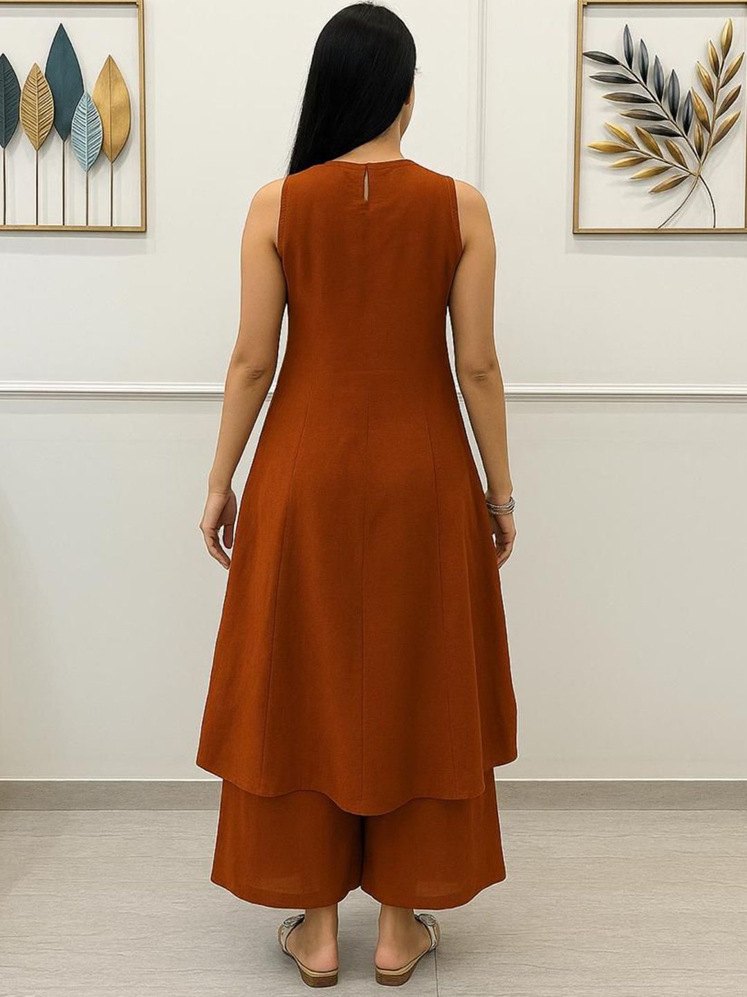 MILAAV Embroidered Mirror Work A-Line Kurta With Palazzos