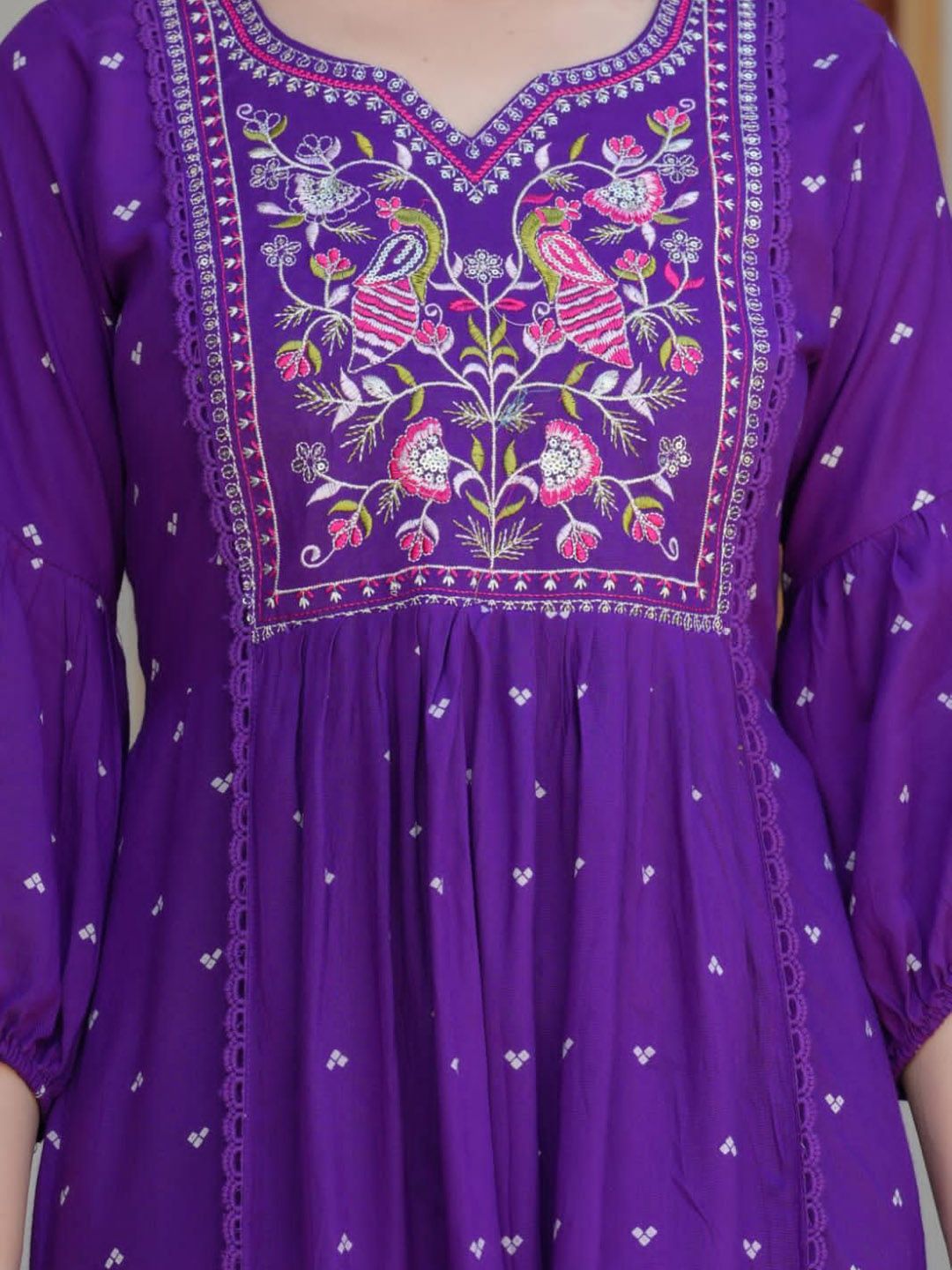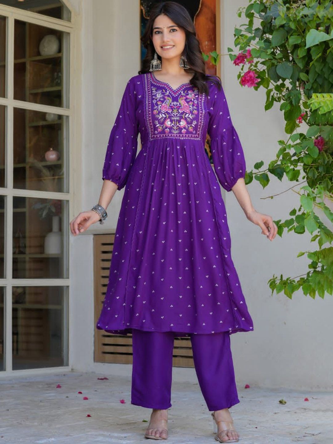 Buy this stylish MILAAV Floral Printed V-Neck Anarkali Thread Work Kurta With Trousers & Dupatta at Marincart Nepal. This product offers great quality and value. Perfect for those looking for the latest trends in fashion. Get yours now at unbeatable prices.
