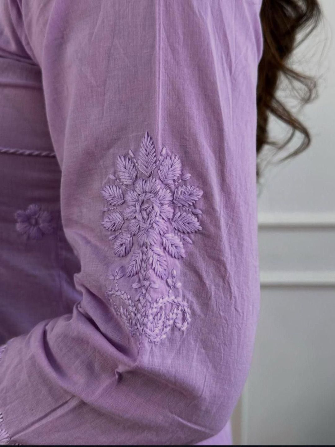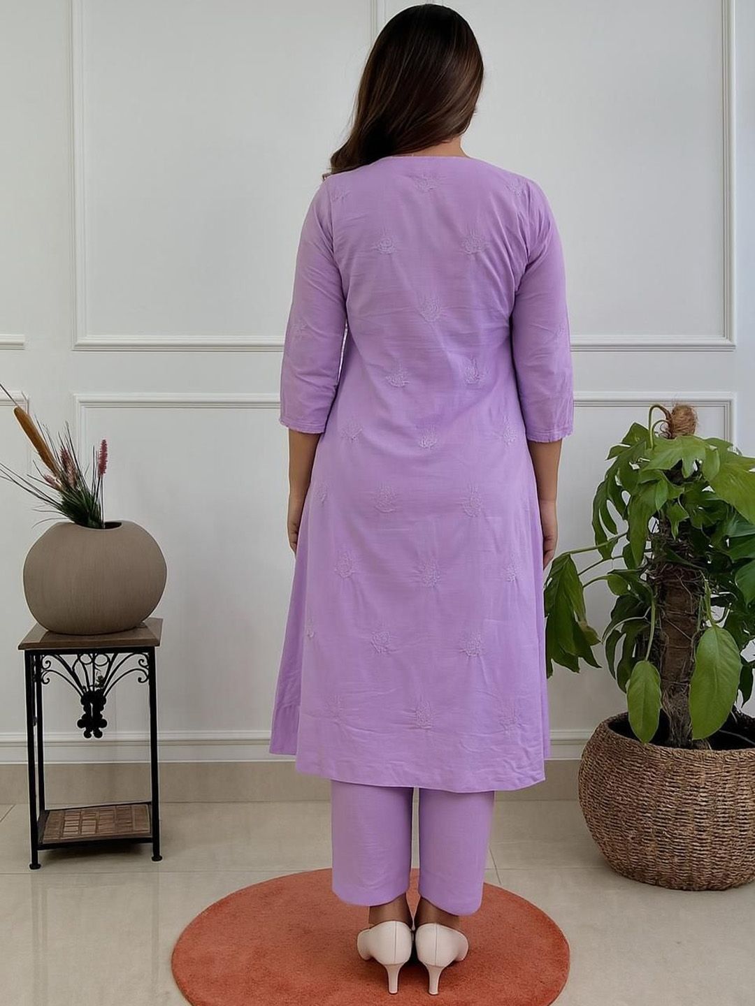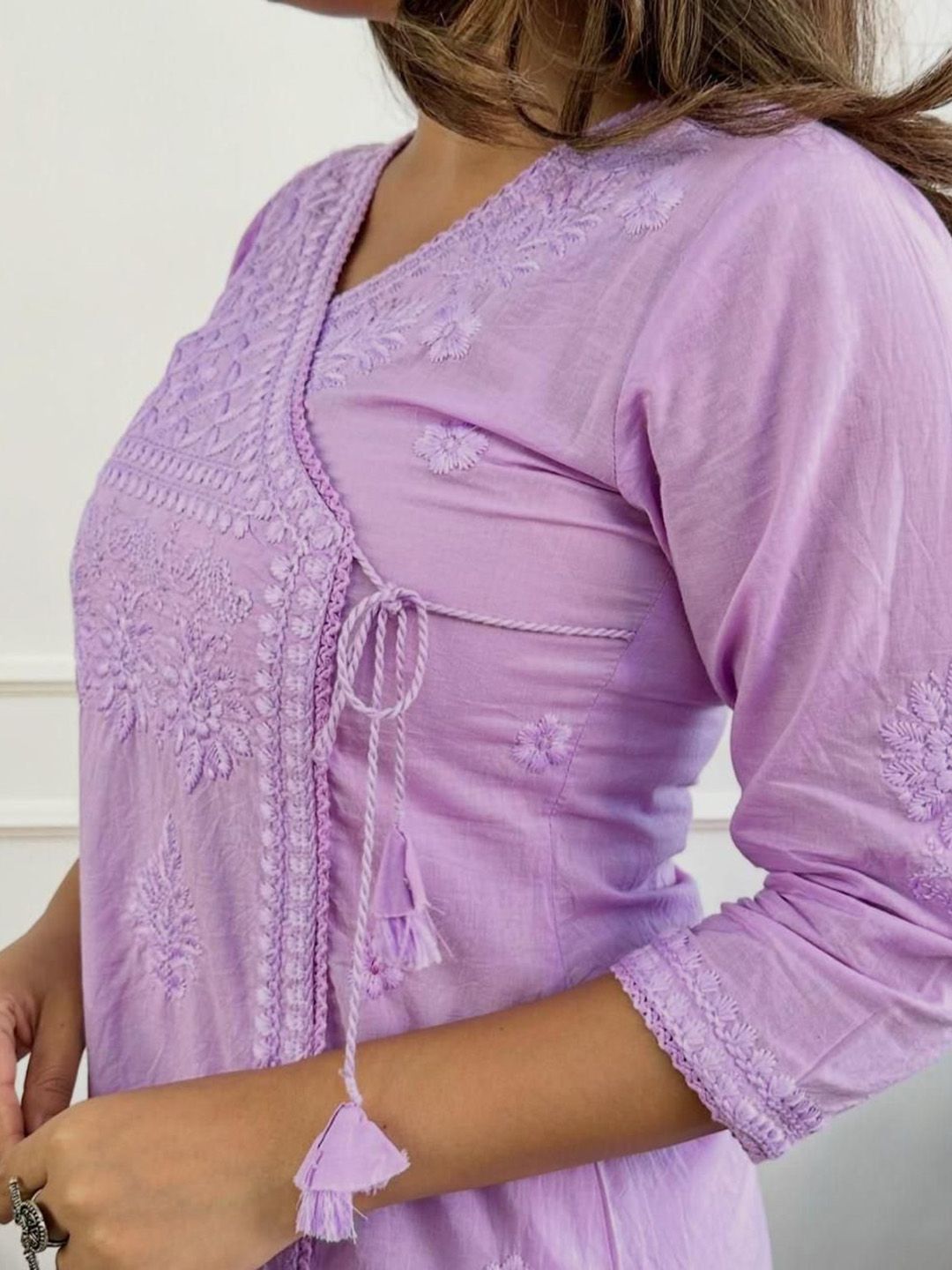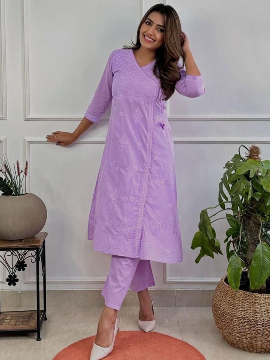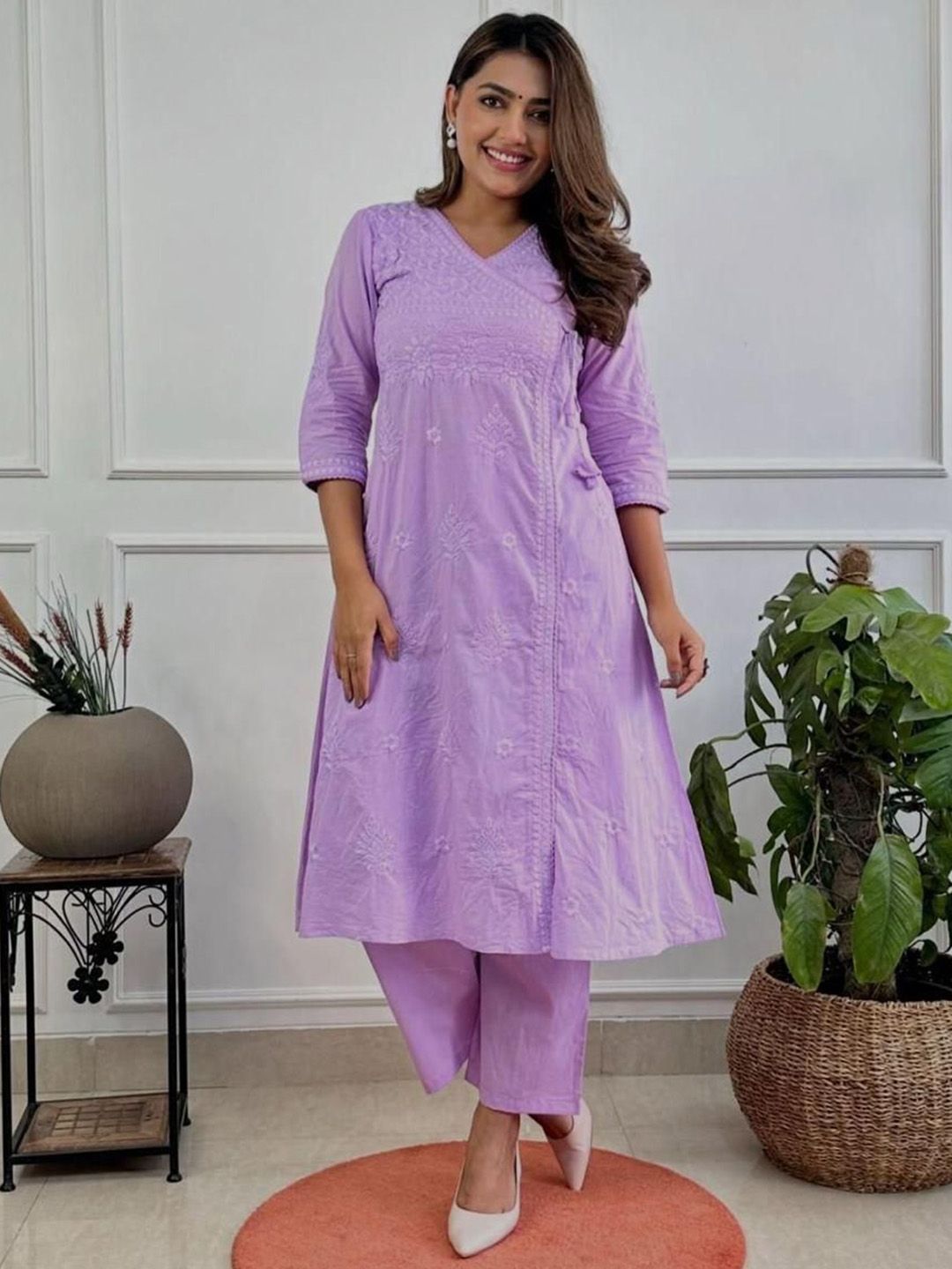 MILAAV Women Floral Embroidered Angrakha Thread Work Kurta with Trousers